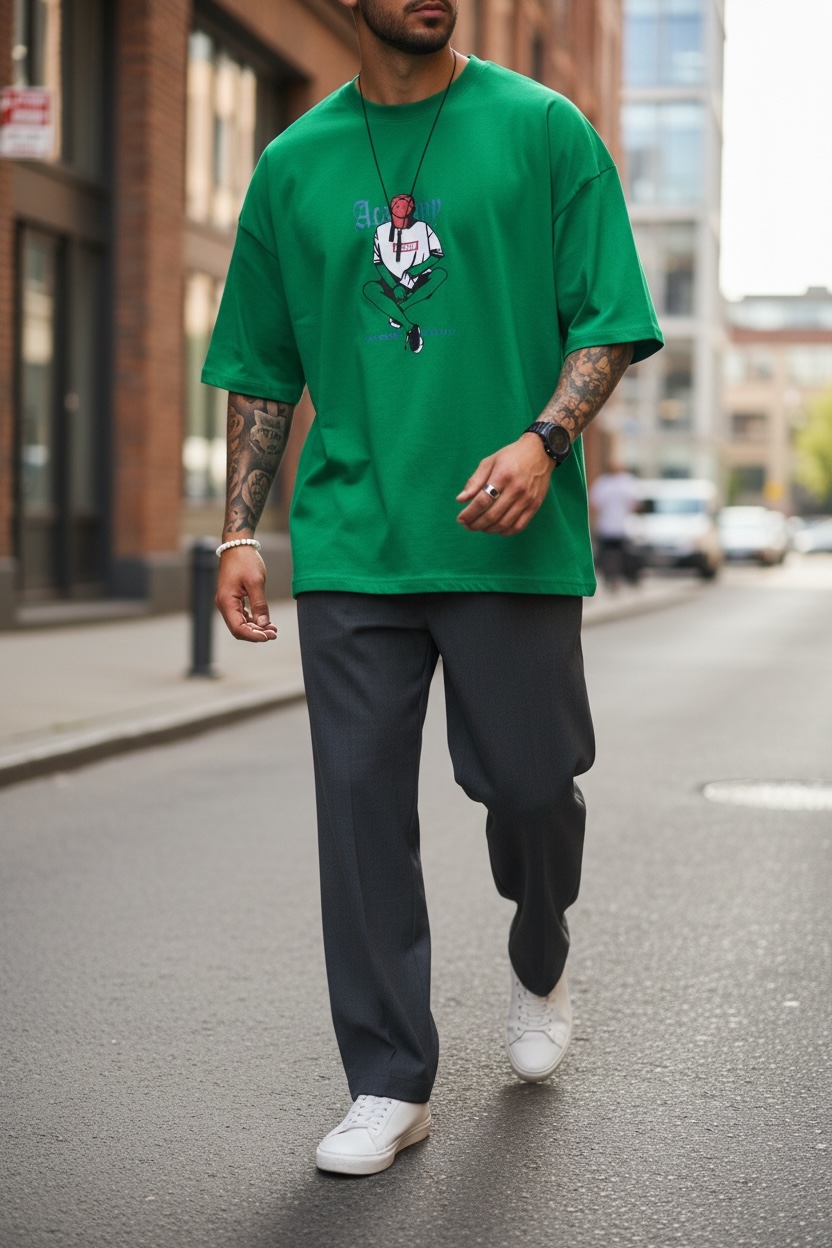 Tricou barbati verde cu imprimeu pe spate oversize 11814 22A-2.3