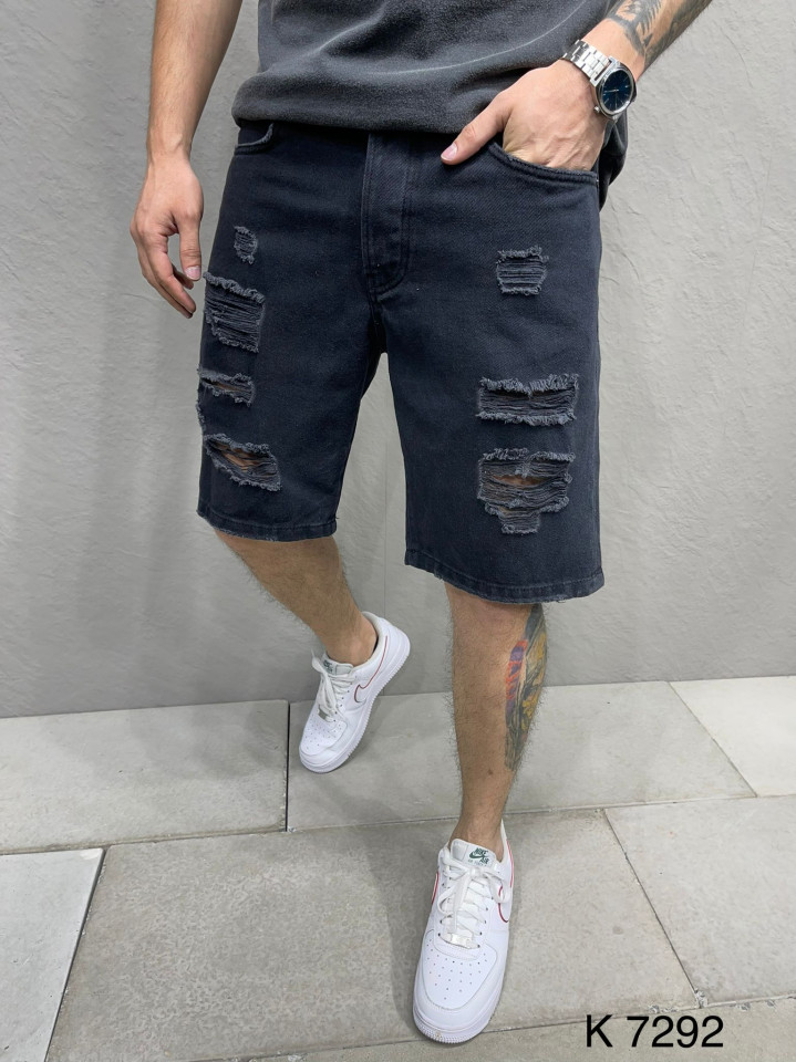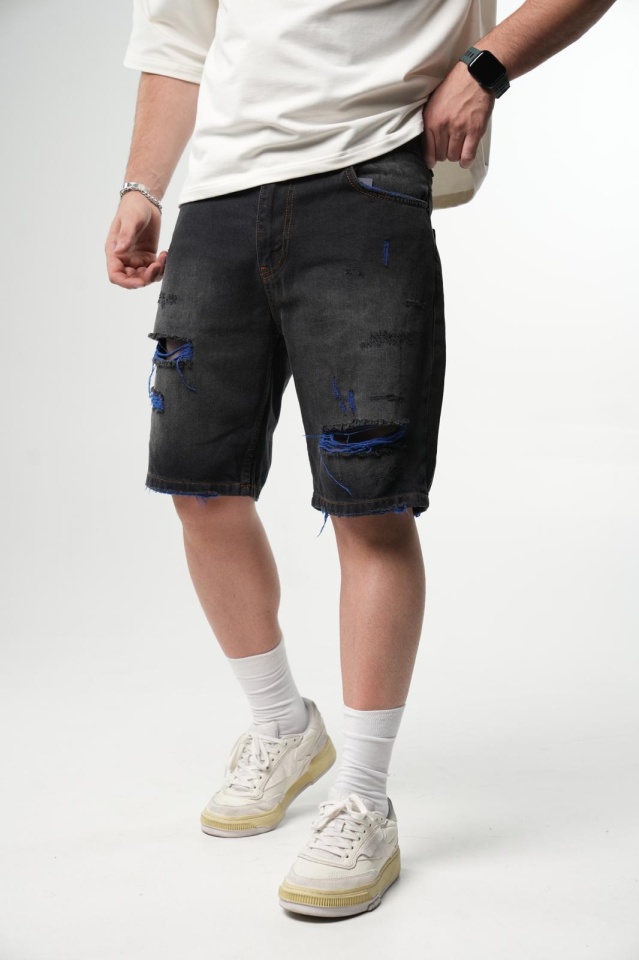 PANTALONI SCURTI RUPTI BLACK-BLUE PSAS211(9520) (MĂRIME: 36)