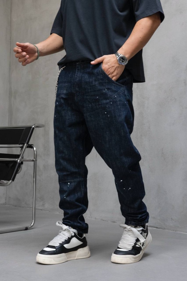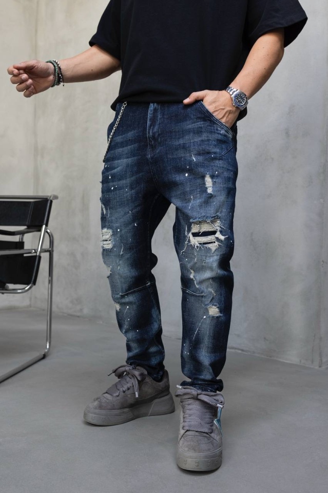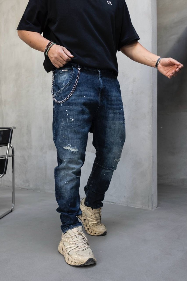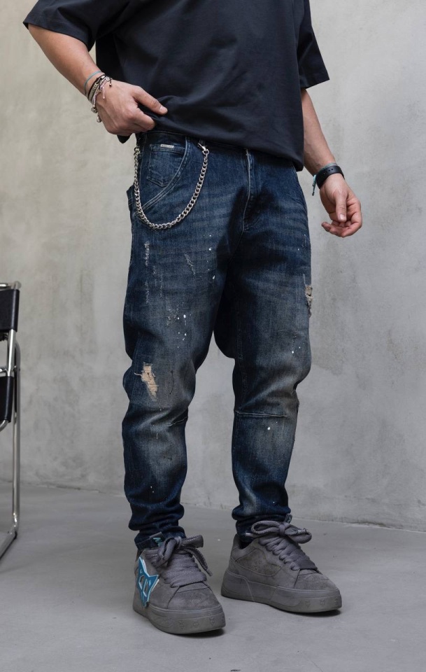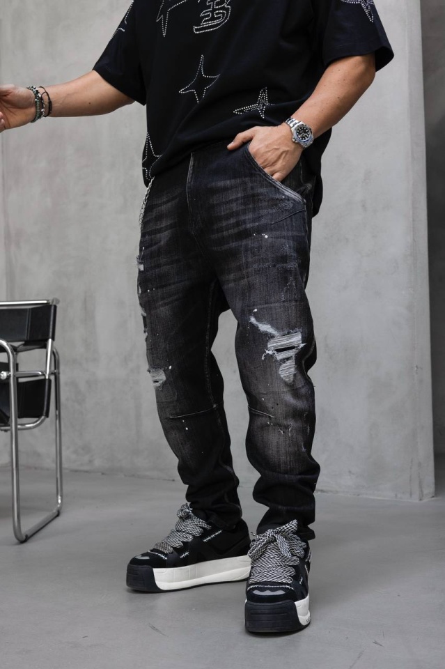 BLUGI LOOSE FIT CU LANT, TAPERED, EFECT UZAT & DETALII DESTROY BGBLACK12(17410) (MĂRIME: 33)