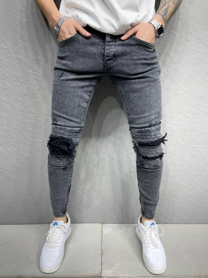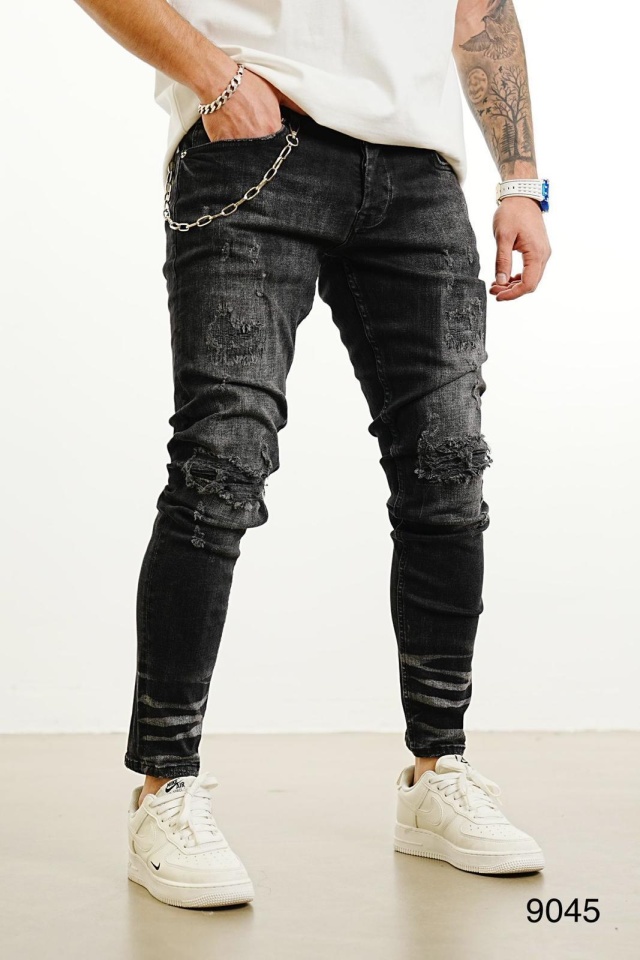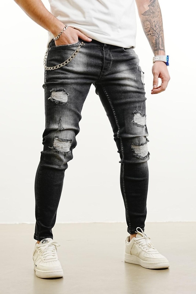 BLUGI SKINNY BĂRBAȚI DENIM STRETCH GREY DISTRESSED BGAS1163(C1447) (MĂRIME: 36)