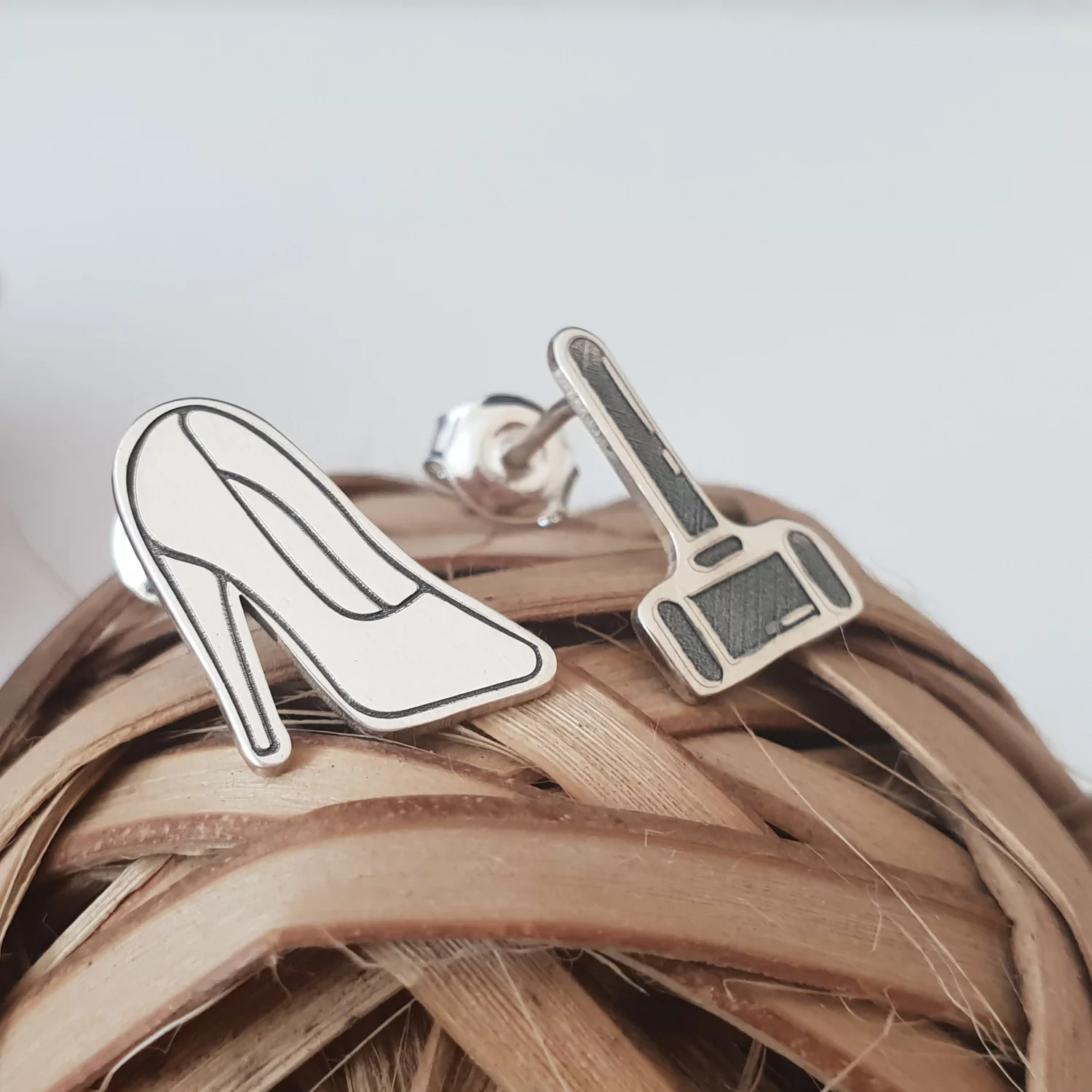 Cercei asimetrici - pantof si ciocan judecatoresc - Argint 925, surub