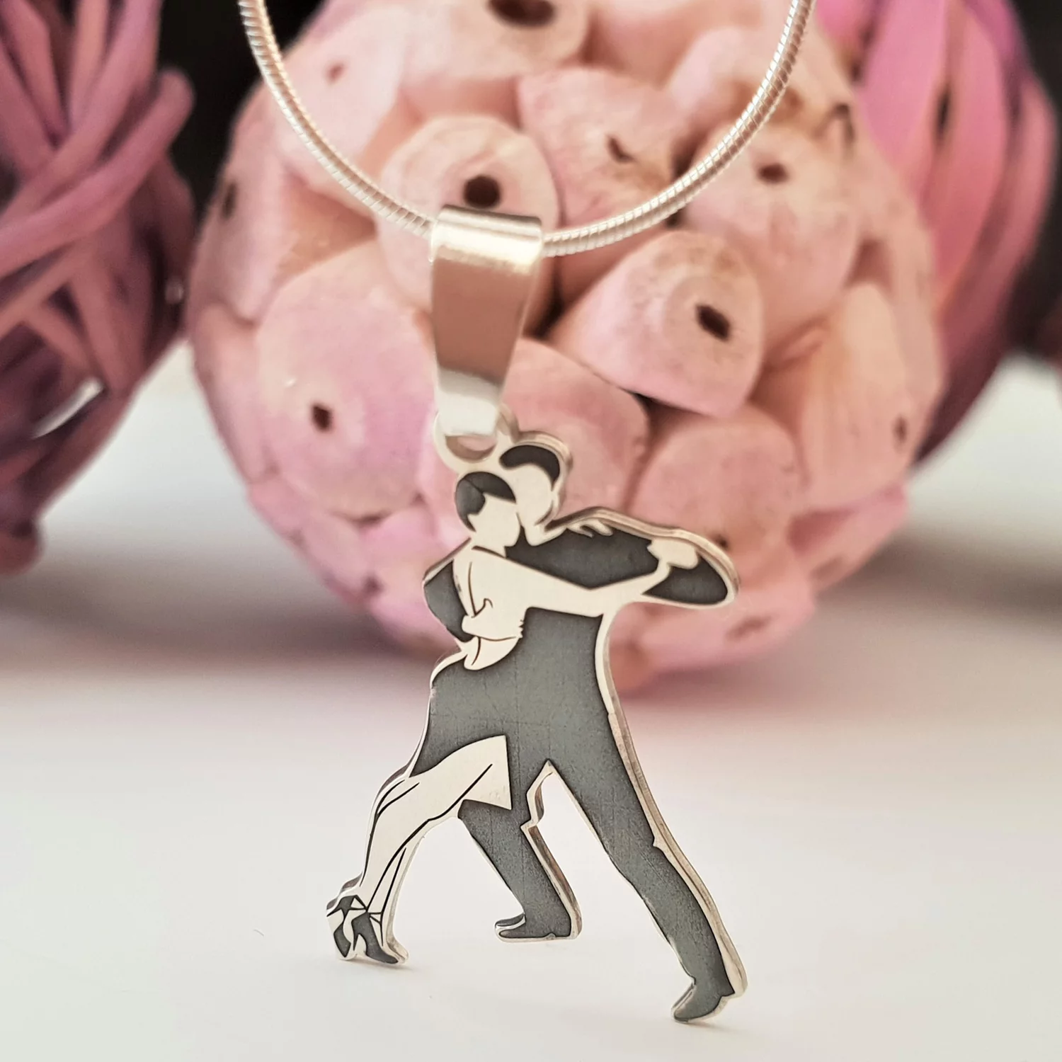 Bratara cu banut gravat cu dansatori - Argint 925, piele impletita