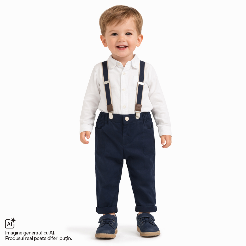 Pantaloni lungi bebelusi Chicco, bretele, Albastru inchis, 00494-69MFCO