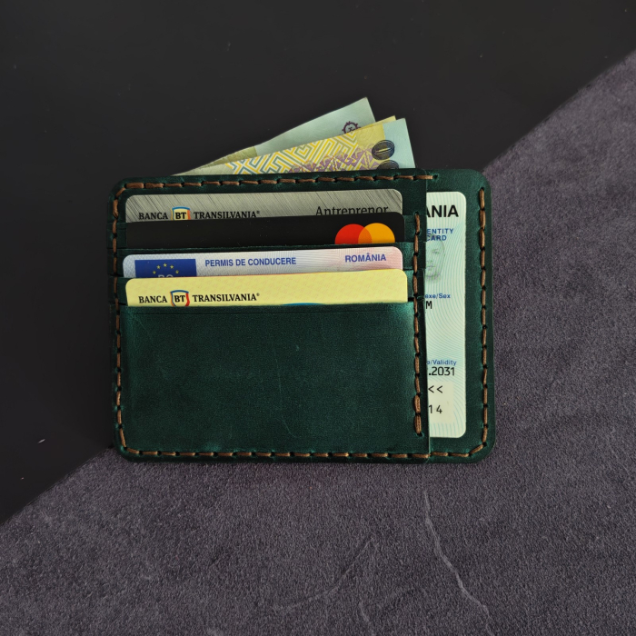 Portofel din piele naturala, personalizabil, Zeno, verde, protectie RFID