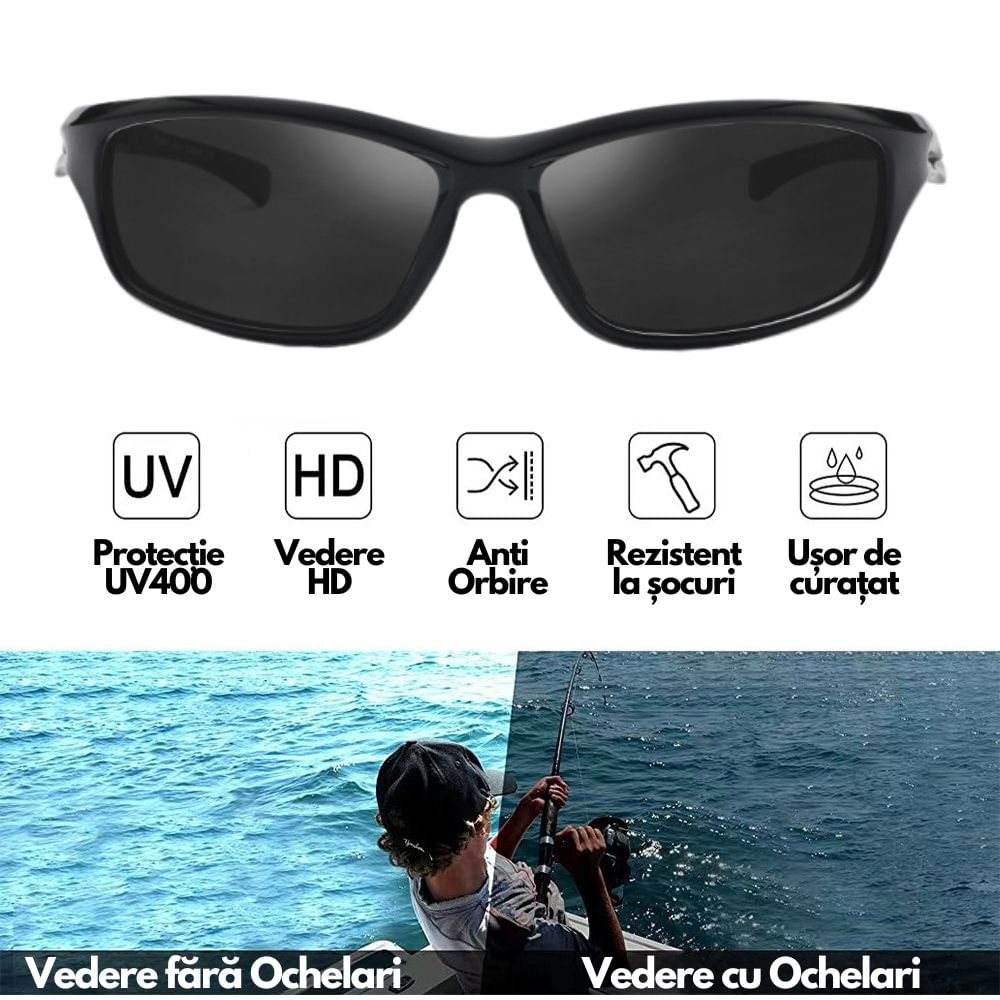 Ochelari de Soare Polarizati Sport, HIPOLAR ®, Lentila Neagra HD33, UV400, cu Carcasa de Protectie
