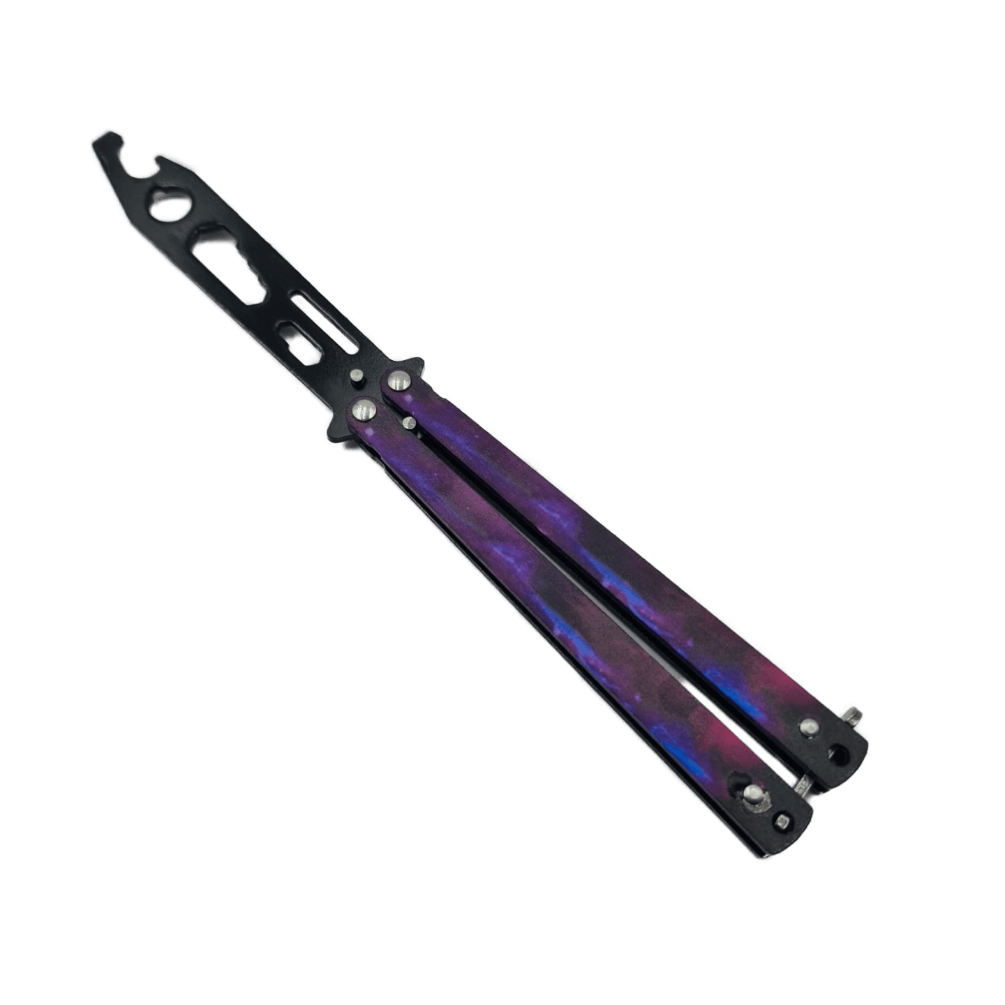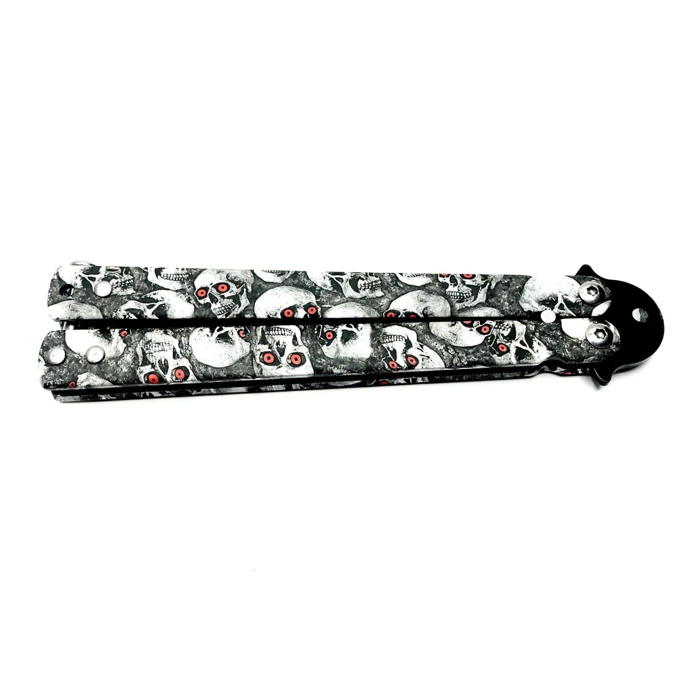Cutit Fluture Fara Tais Pentru Antrenament, Model Cap de Mort Rosu, Curbat, 24 cm