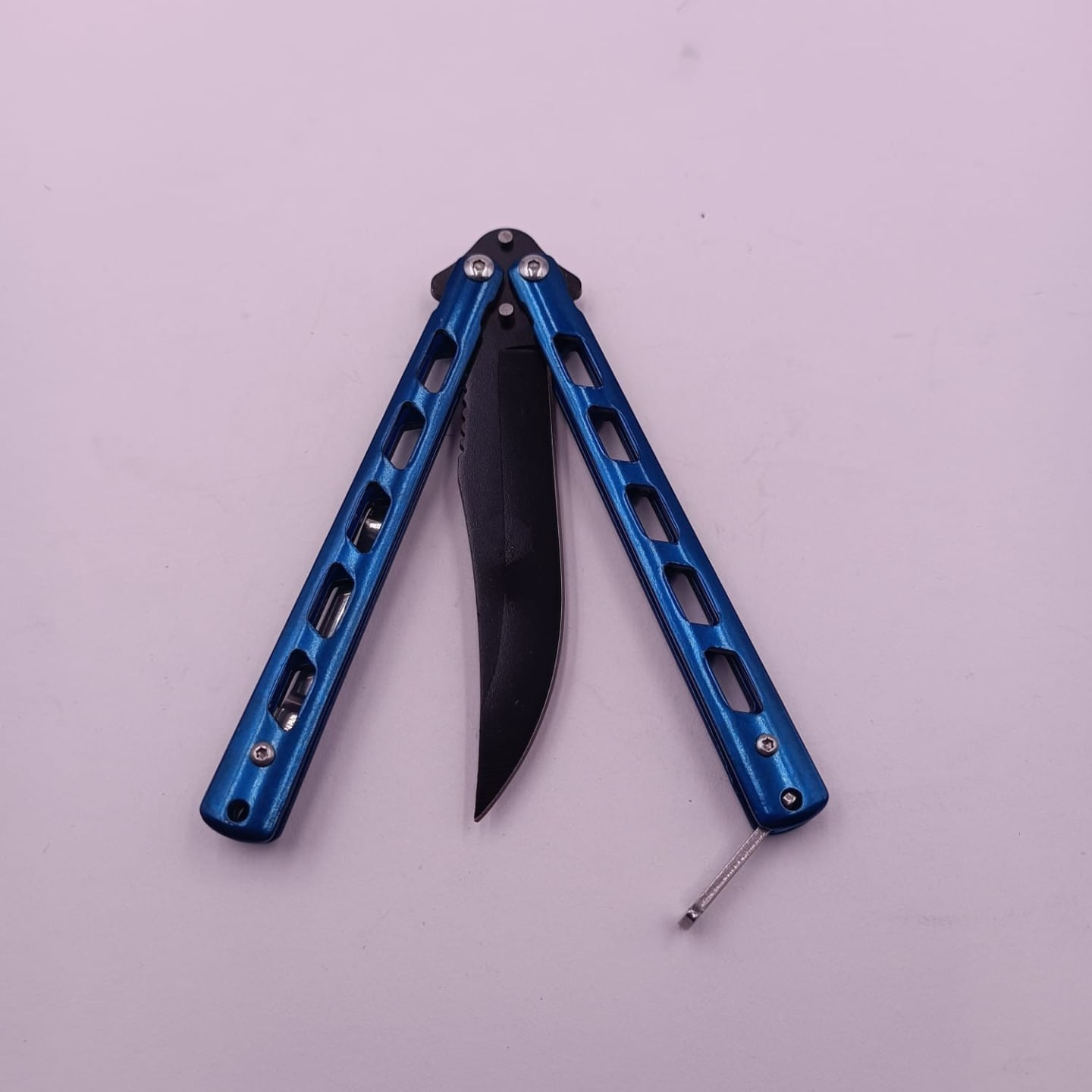 Cutit Fluture cu Tais, Model Gauri, Lama Curbata, Sistem Prindere Curea, 22 cm, Albastru