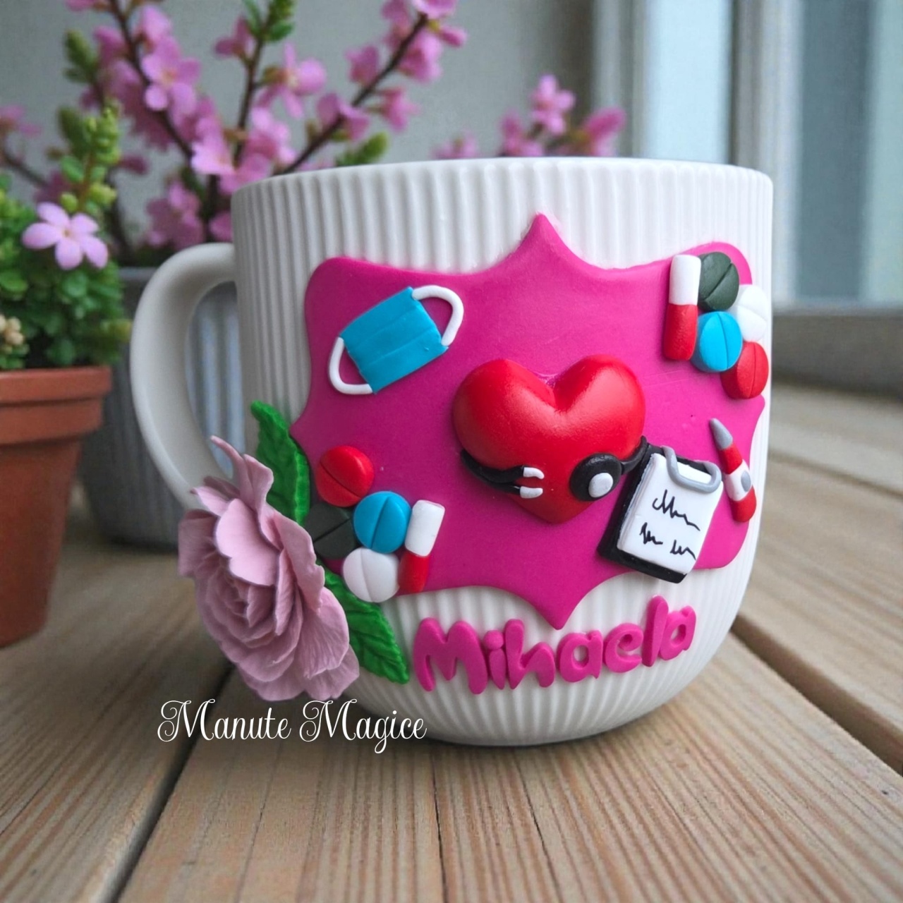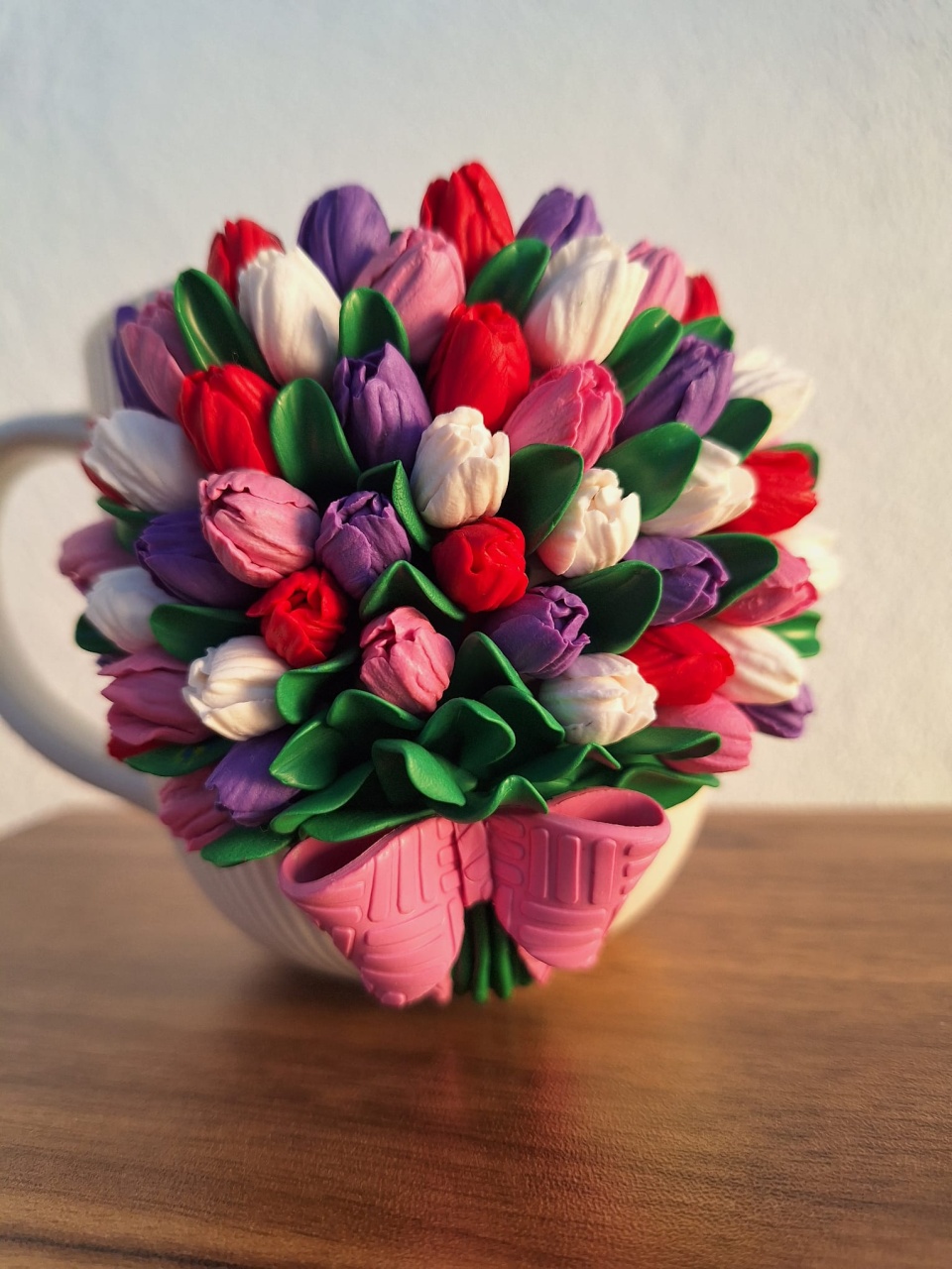 ? Cană decorată manual cu lut polimeric – model lalele ?