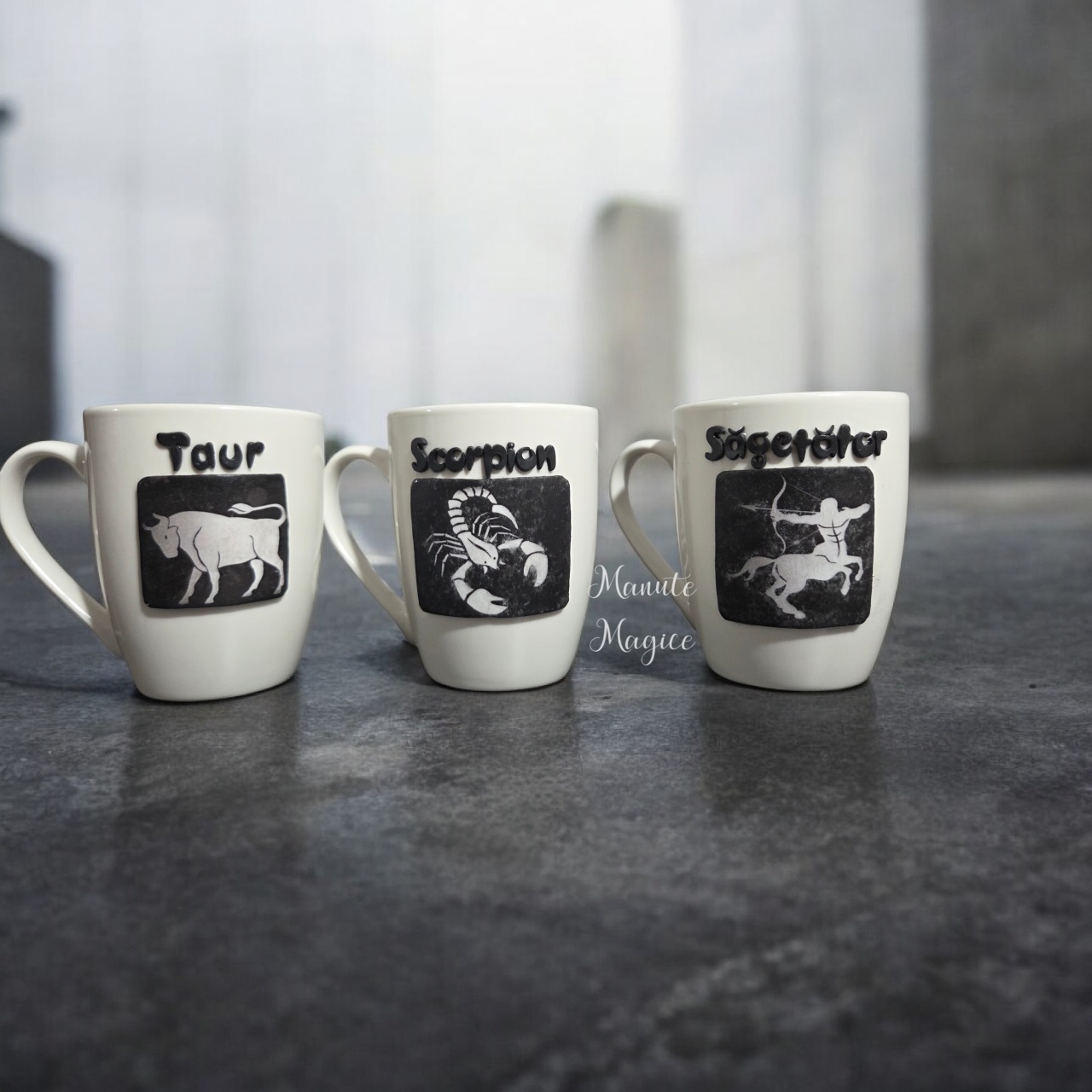 Cană Zodiac – realizată manual din lut polimeric ♈♉♏♐
