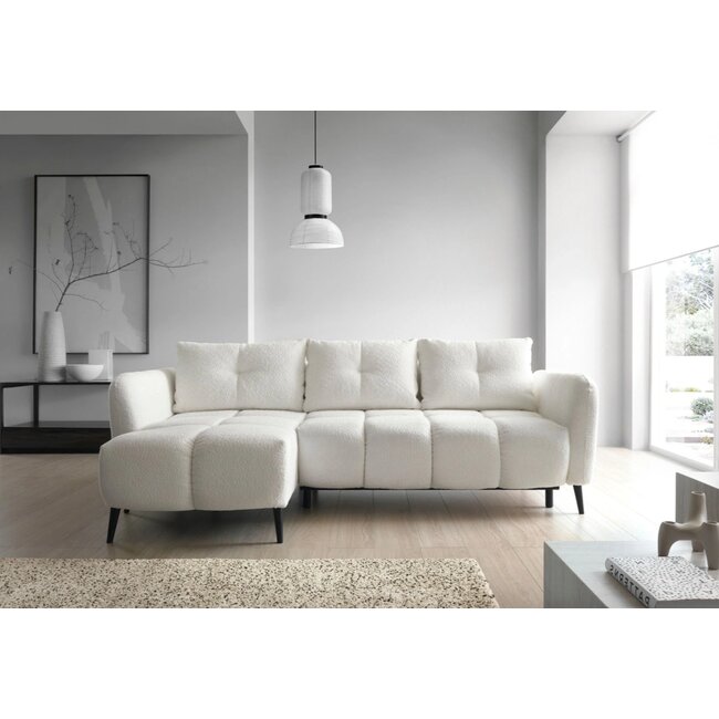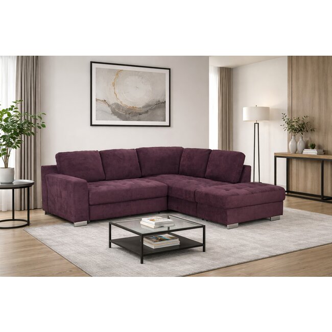 Colțar extensibil Run, spătar rabatabil și ladă depozitare, cadru lemn și poliuretan, 266x196 cm, personalizabil, diverse culori