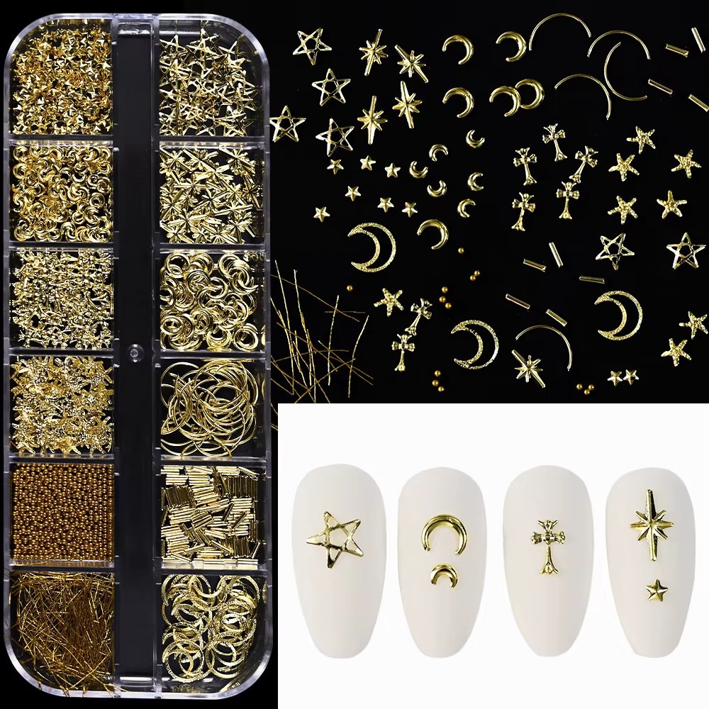 Ornamente unghii Marquise, RHINE06, Auriu/Argintiu