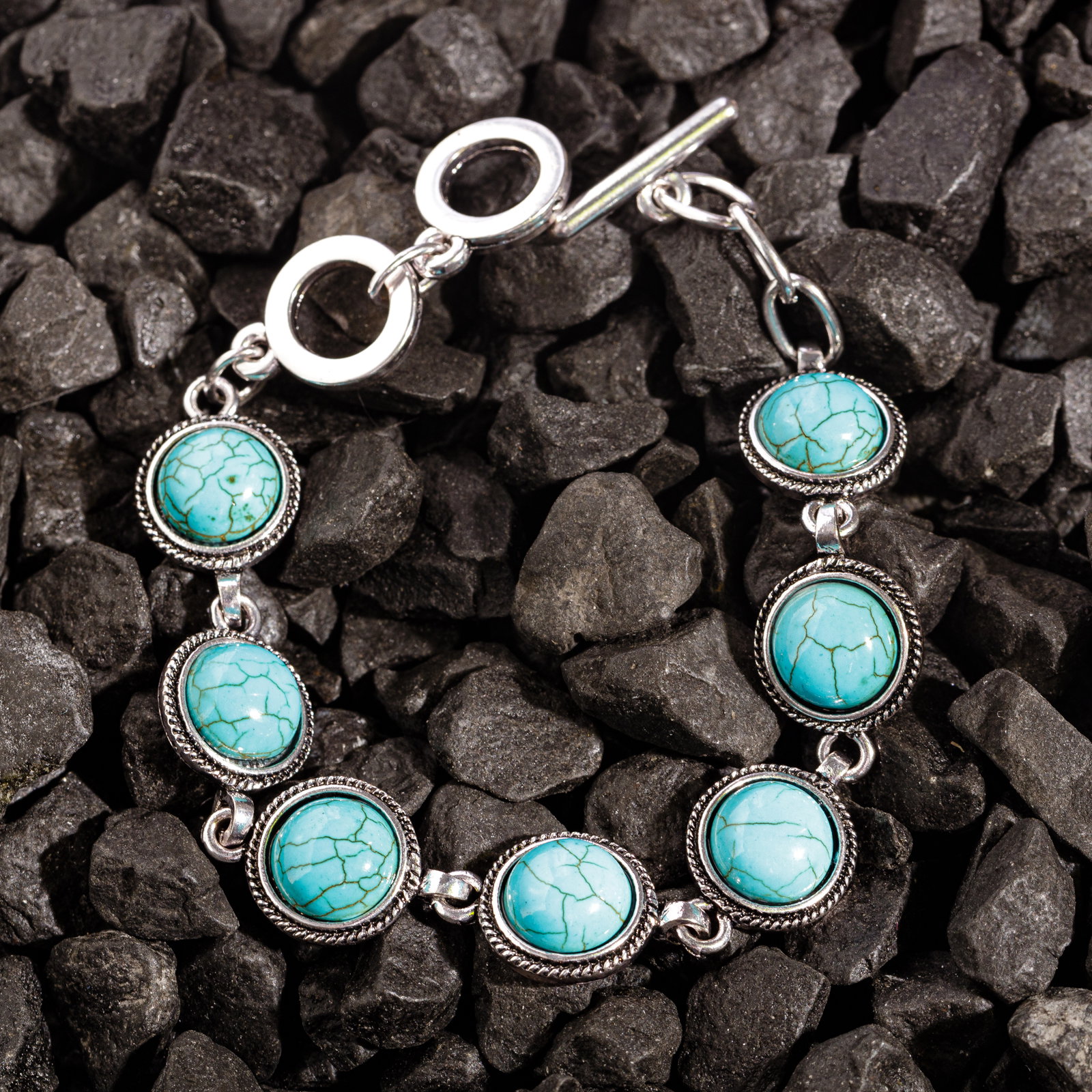 Bratara cu 7 elemente rotunde din piatra naturala de howlit turcoaz