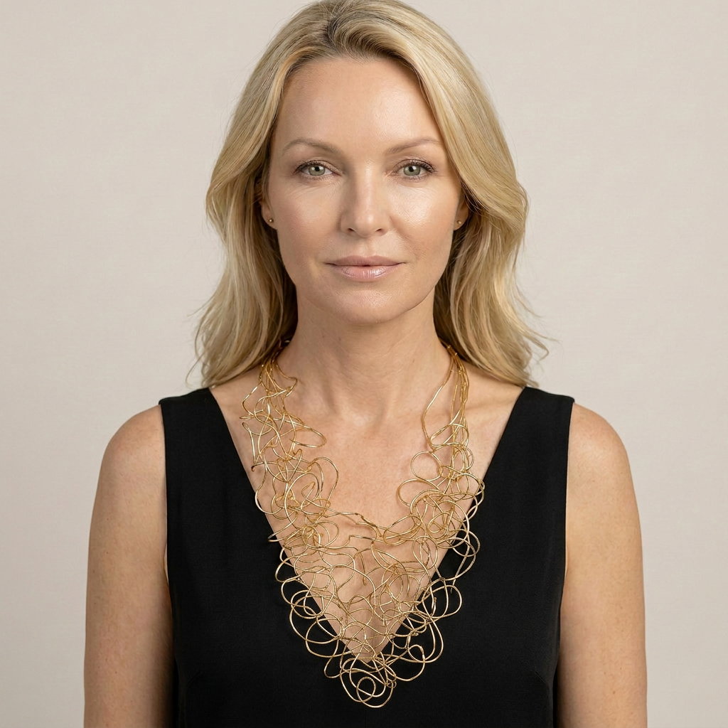 Colier lung statement din multe siruri, cu bucle in cascada, auriu