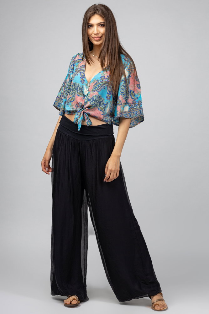 Pantaloni negri din matase si vascoza,, tip salvari Talie unica
