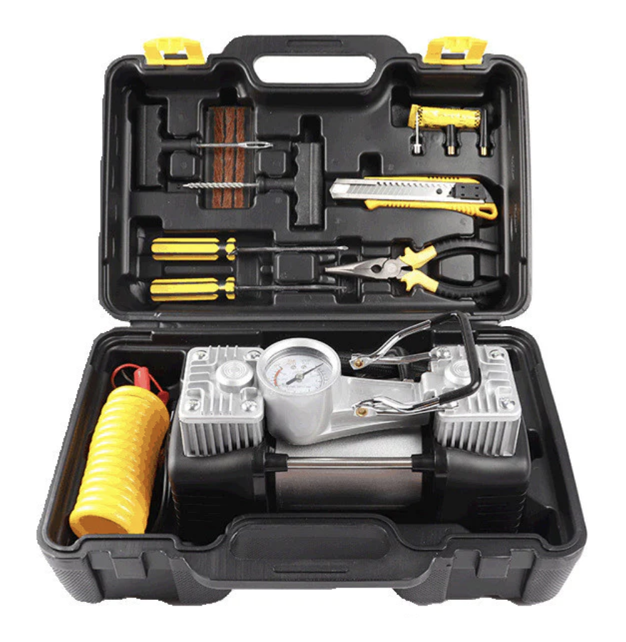 Kit pentru pana Auto compresor 12V cu 2 cilindri si 7 accesorii