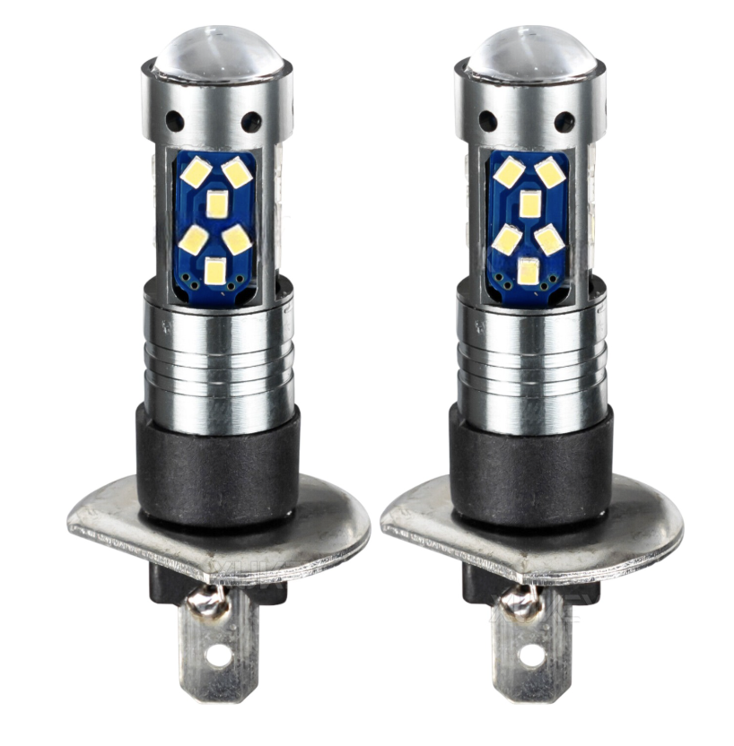 Set 2 becuri auto LED H3 cu lupa 60W 27 SMD 12V 6000K