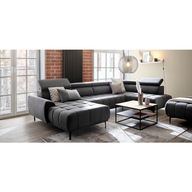 Colțar Fenix N, design modern cu influențe industriale, spumă poliuretanică și arcuri, stofă rezistentă, 277x175x88 cm, personalizabil