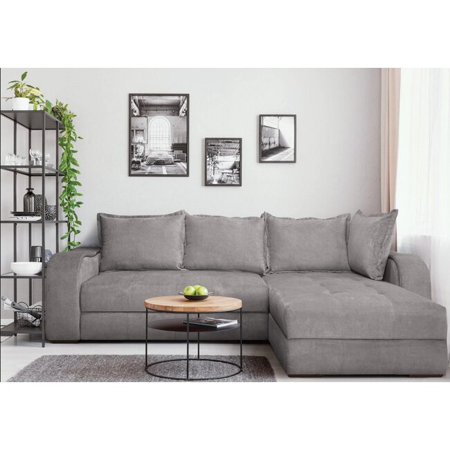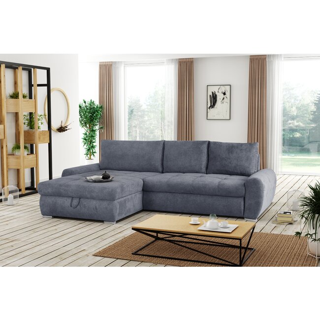 Colțar Parma extensibil, spațiu depozitare, suprafață dormit 140x210 cm, 249x164 cm, gri