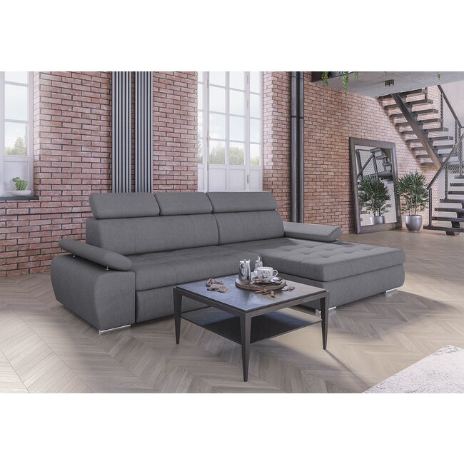 Colțar Viena Tip 1 extensibil, tetieră reglabilă, ladă depozitare, 264x168 cm, Gri
