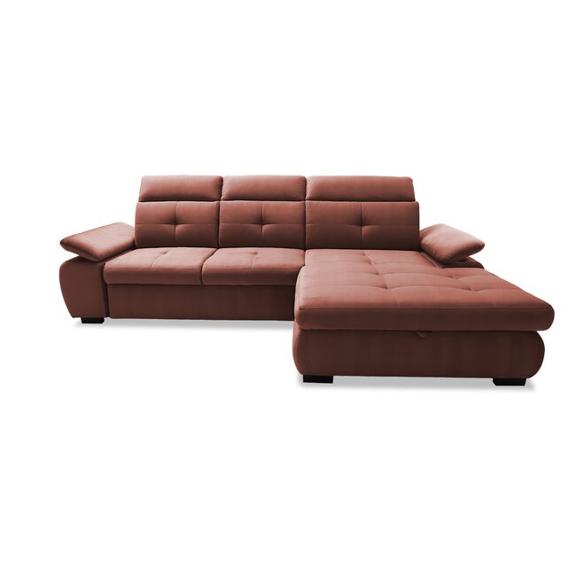 Colțar extensibil Lotus, tetiere reglabile și ladă integrată, funcție de dormit și confort sporit, structură din fag masiv, 274x196 cm, culoare personalizabilă