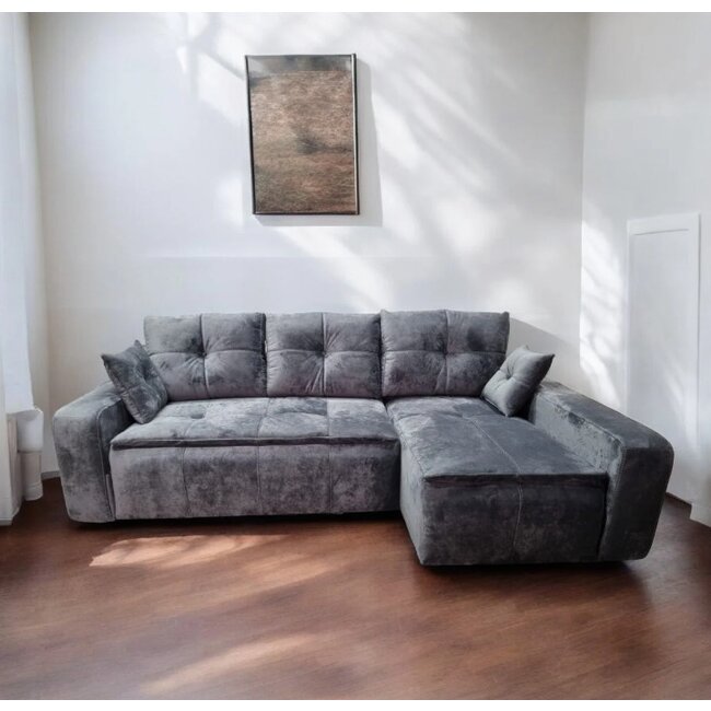Colțar Carmen Tip 1 extensibil, ladă depozitare, stofă rezistentă, 255x170 cm, Gri