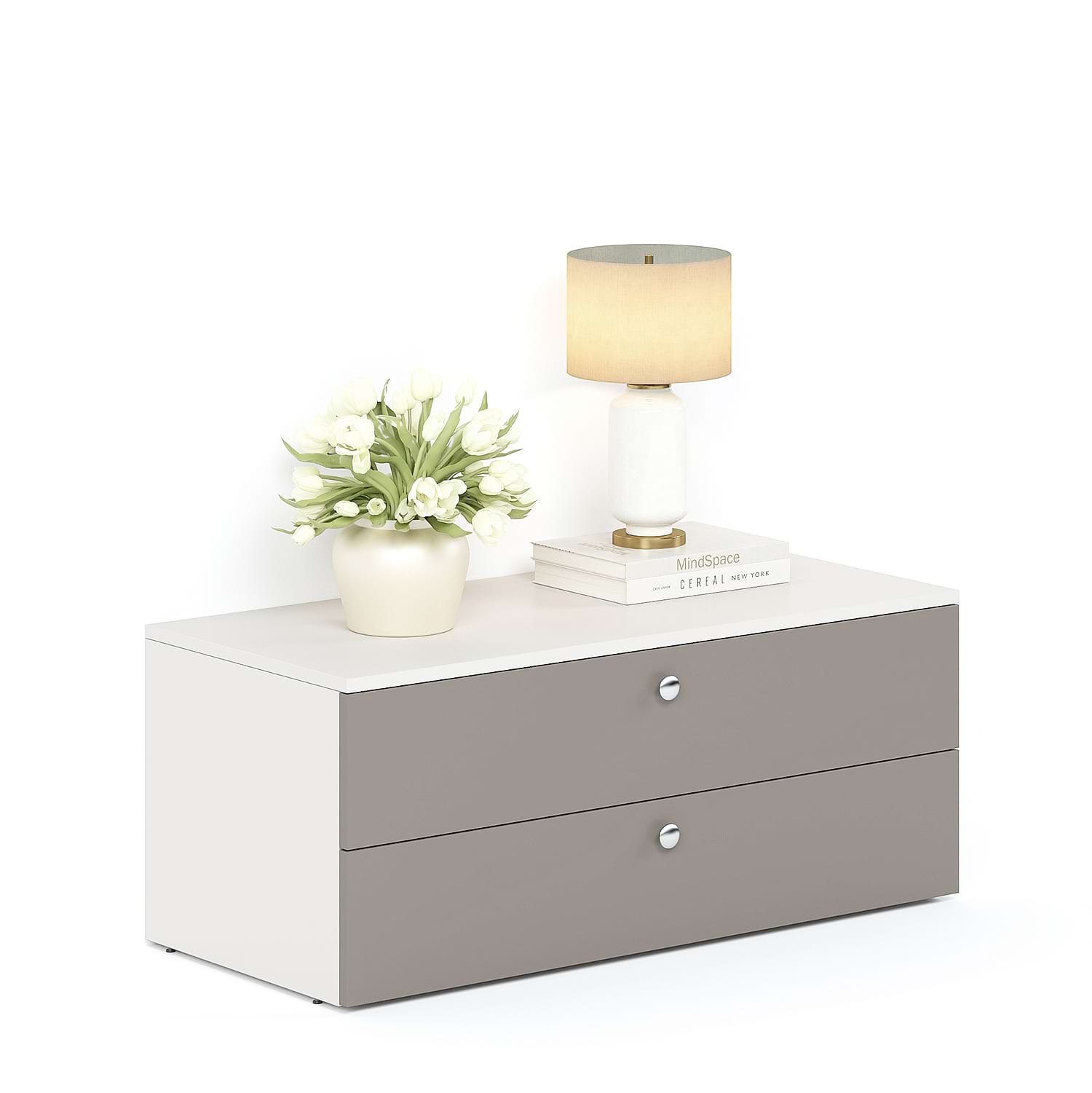 Comoda ARONA 150, A42, H39, 2U2S, Alb Portelan, Gri Piatra