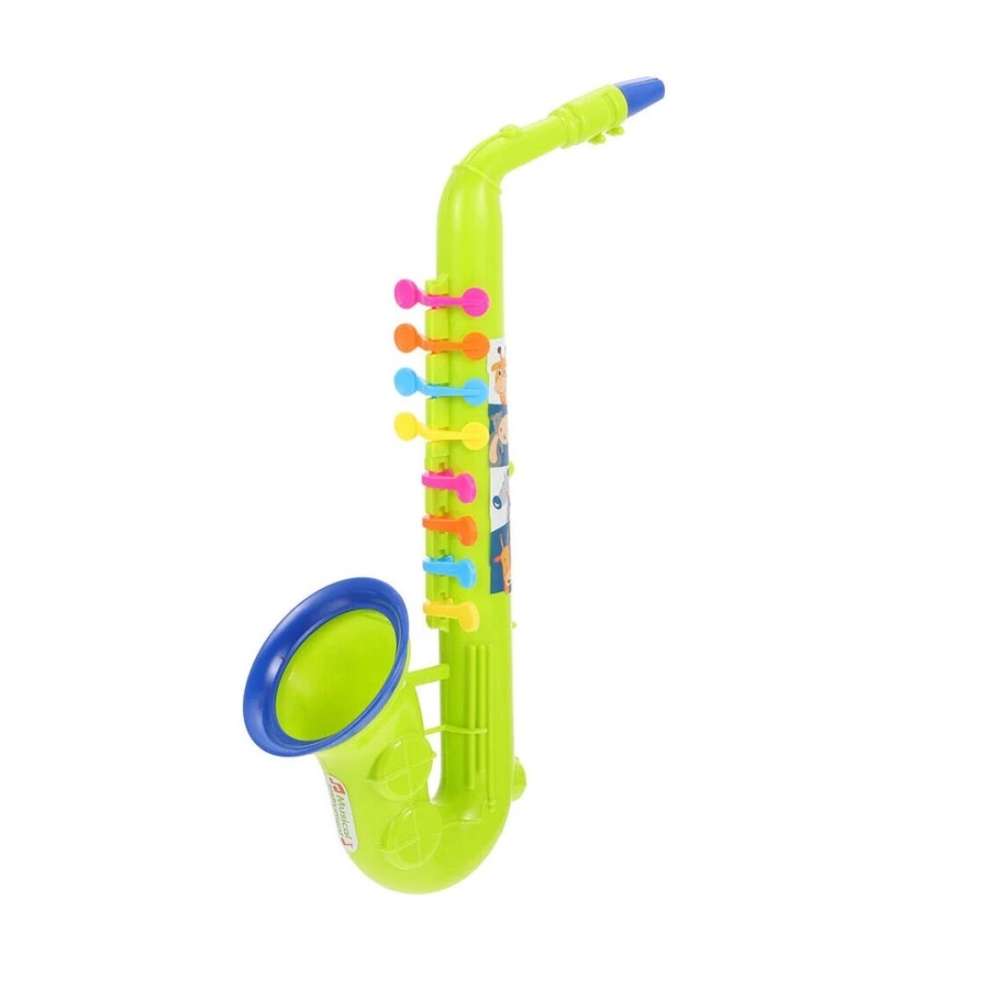 Saxofon de jucarie, din Plastic, 32.2x13x8.2cm, pentru Copii de 3 ani+, Verde/Portocaliu