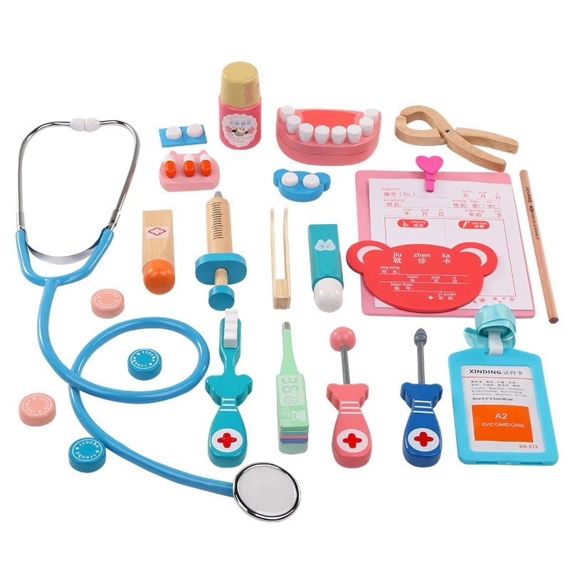 Set joaca doctor cu 23 de accesorii din lemn pentru copii +3 ani