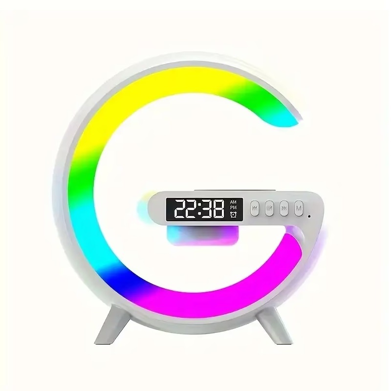 Lampa Smart RGB 5 in 1 - Functie de boxa, ceas, incarcator wireless