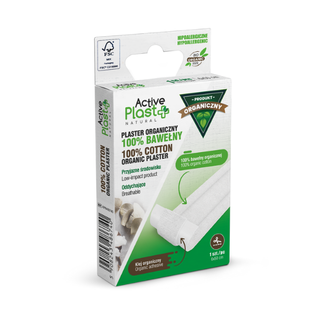Plasturi bumbac organic 100%, 1 bucata, 6*50cm, ActivePlast
