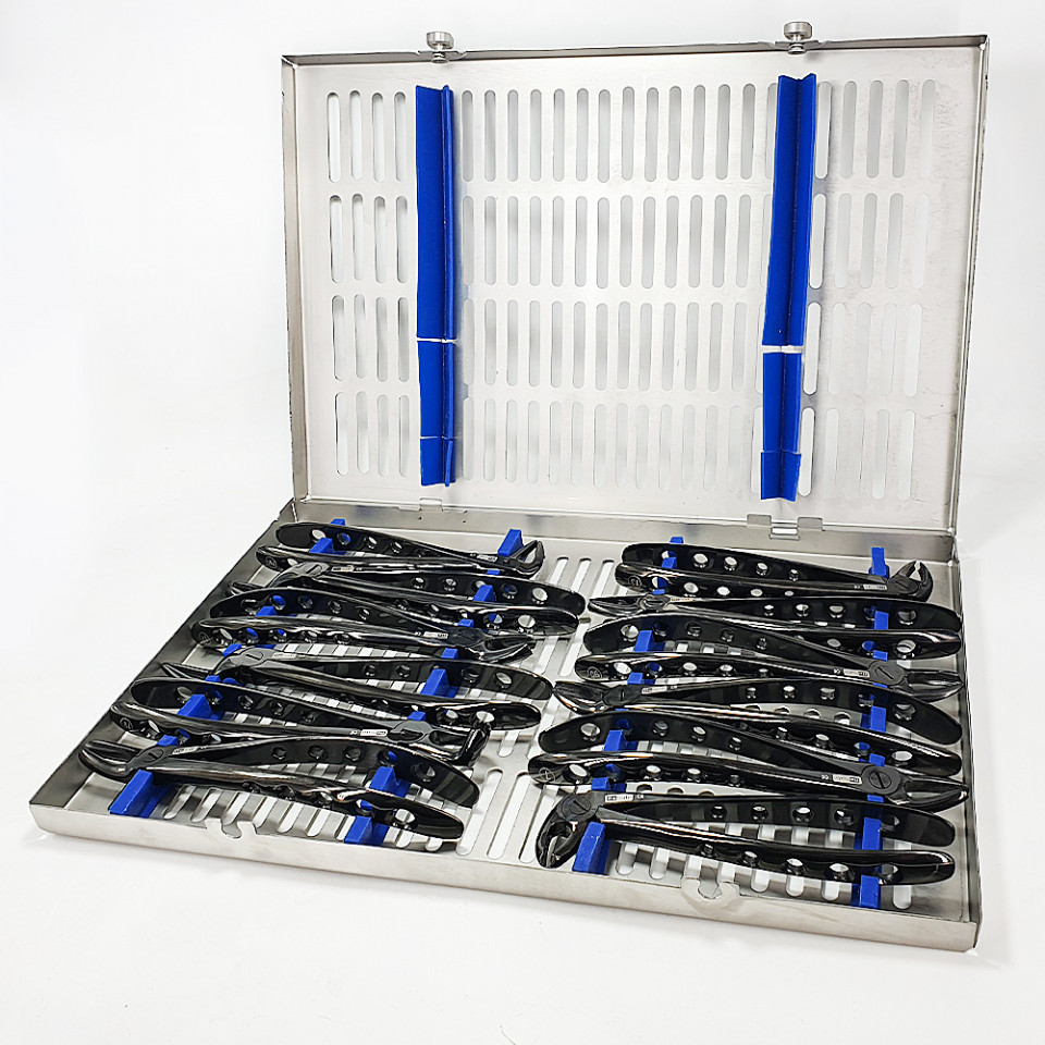 Set 12 clesti extractie din titan plus cutie de sterilizare negri