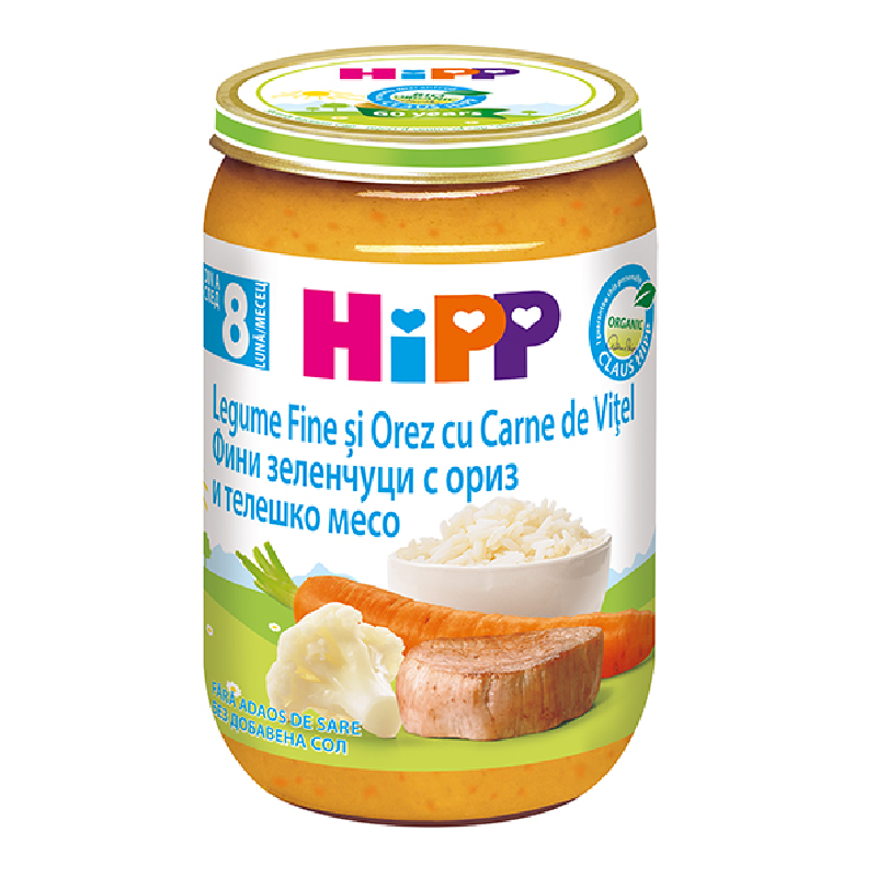 Legume fine si orez cu carne de vitel, +8 luni, 220 g, Hipp