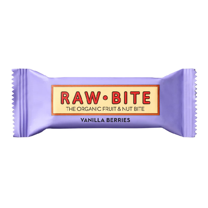 Baton fara gluten, vanilla berries bio, 50 g, Raw Bite