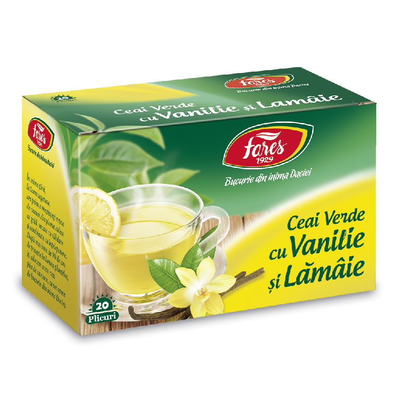 Ceai Verde cu Lamaie si Vanilie, 20 plicuri, Fares