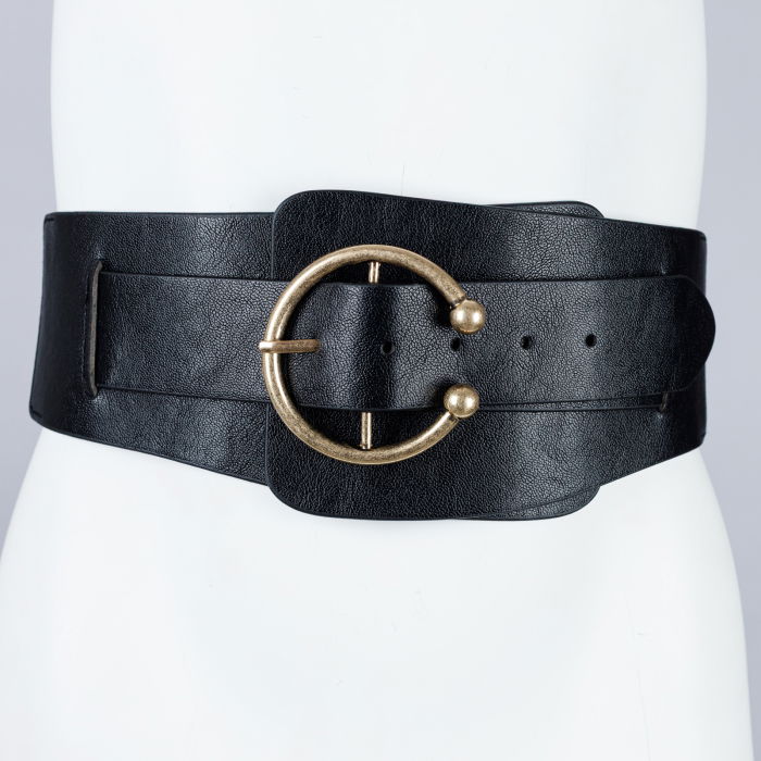 Centura corset lata din piele ecologica neagra cu catarama aurie antichizata