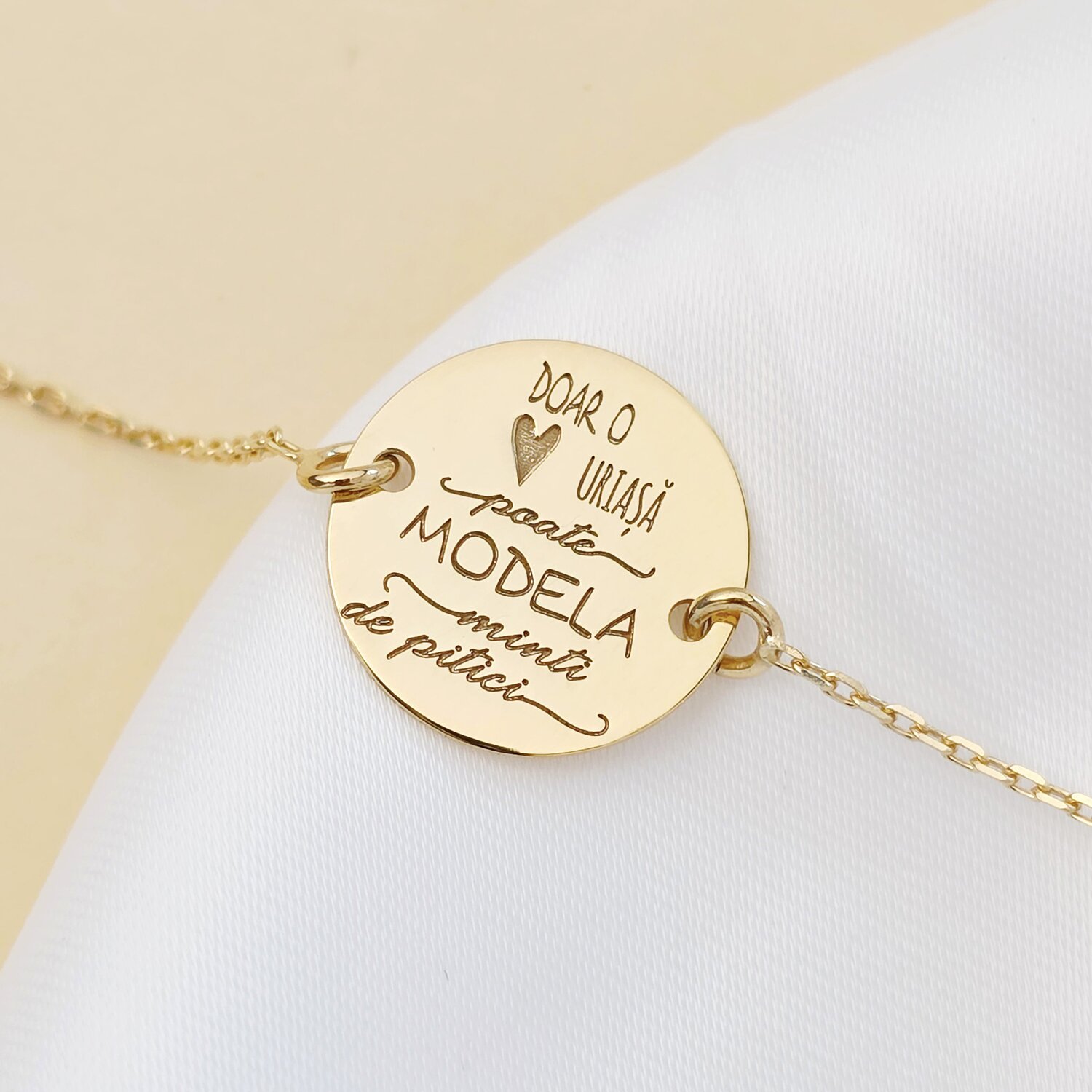 Bratara personalizata - Proaspata Mamica - Argint 925 placat cu Aur Galben 18K - Lantisor glisant ajustabil