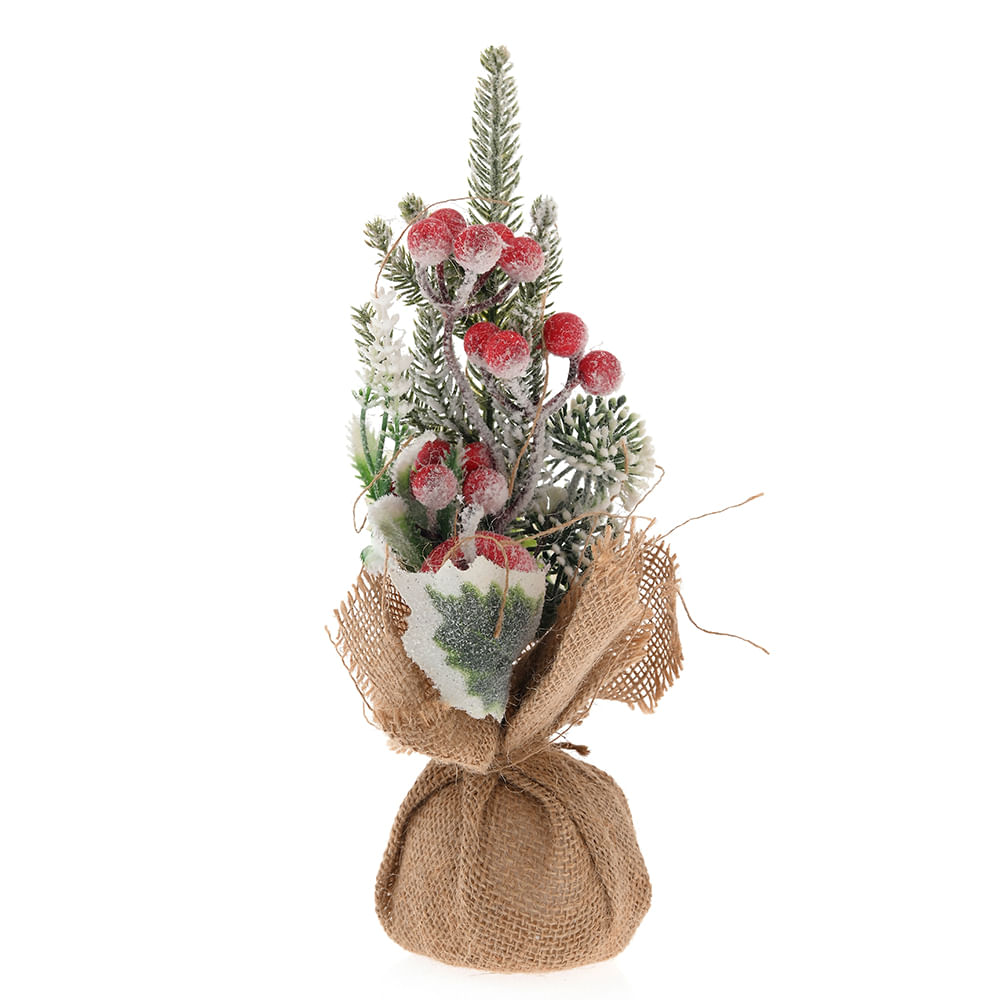 Decor de Craciun cu crengute si bobite rosii 30 cm