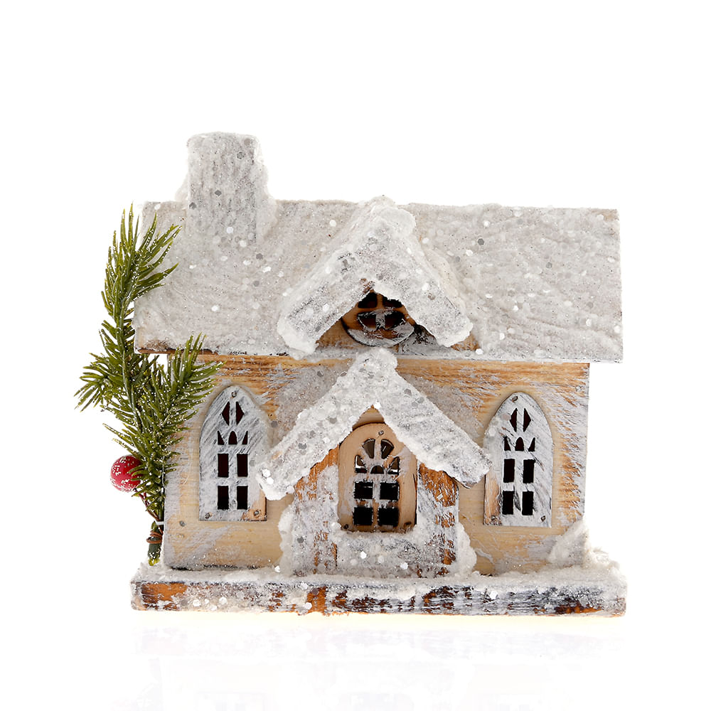 Decoratiune casuta de Craciun cu zapada 15 cm