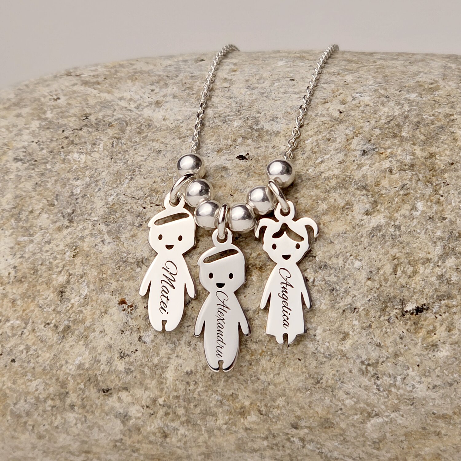 Lantisor Bucuria Mea - Siluete Copii cu nume gravate & Bilute - Argint 925