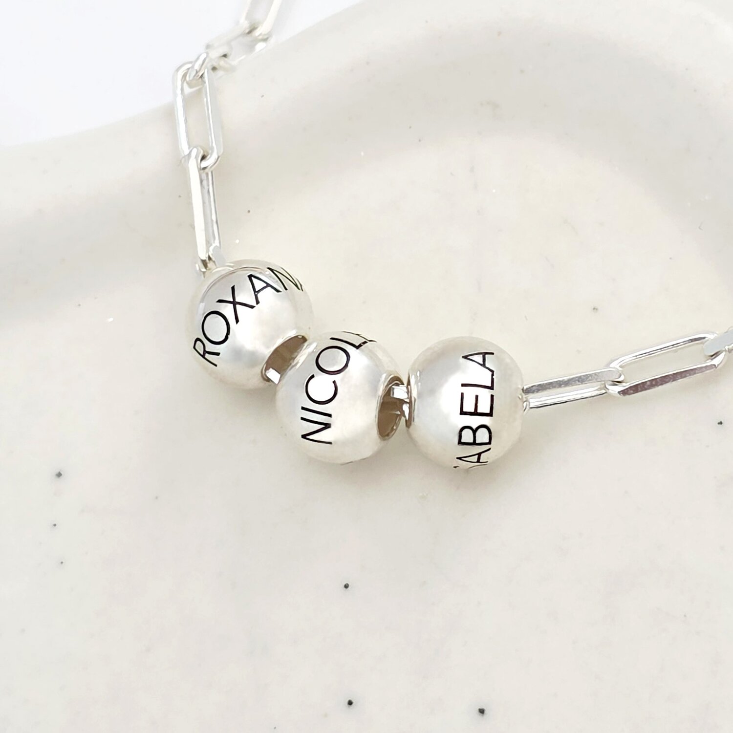 Colier Legaturi Pretioase - 3 bilute personalizate cu nume - Lantisor cu zale dreptunghiulare - Argint 925
