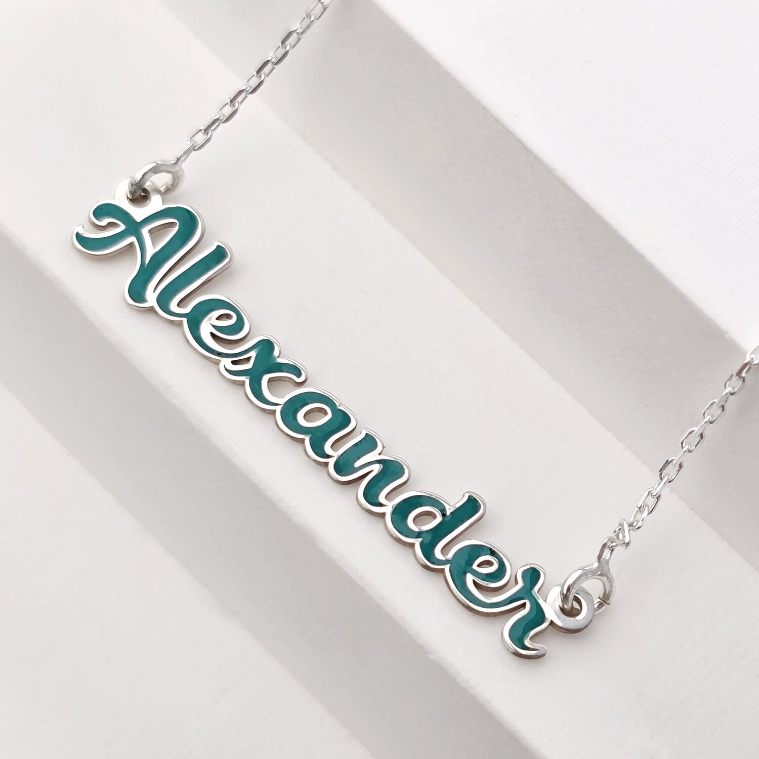 Lantisor cu nume si email turcoaz - Argint 925