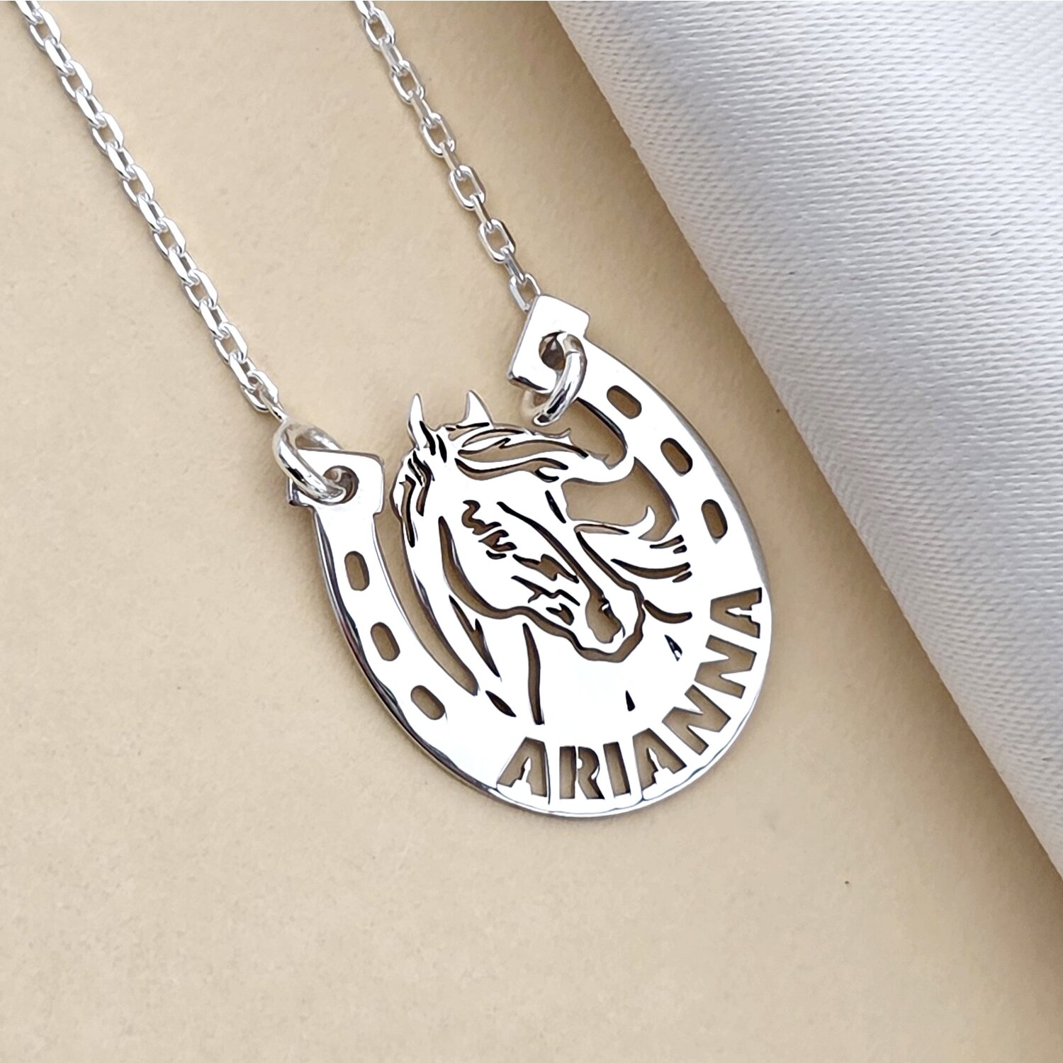 Lantisor cu pandantiv personalizat cal cu potcoavă – 18 mm - Lant link - Argint 925