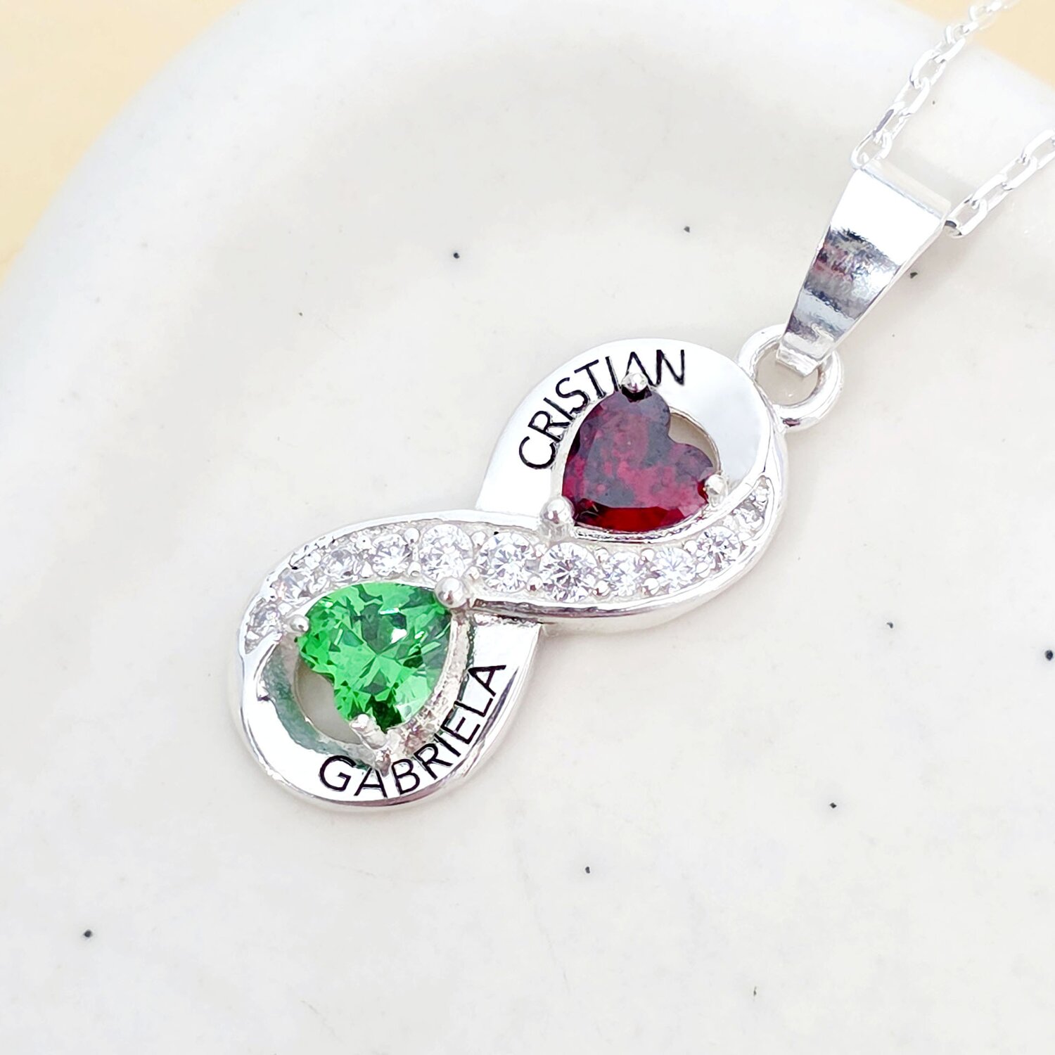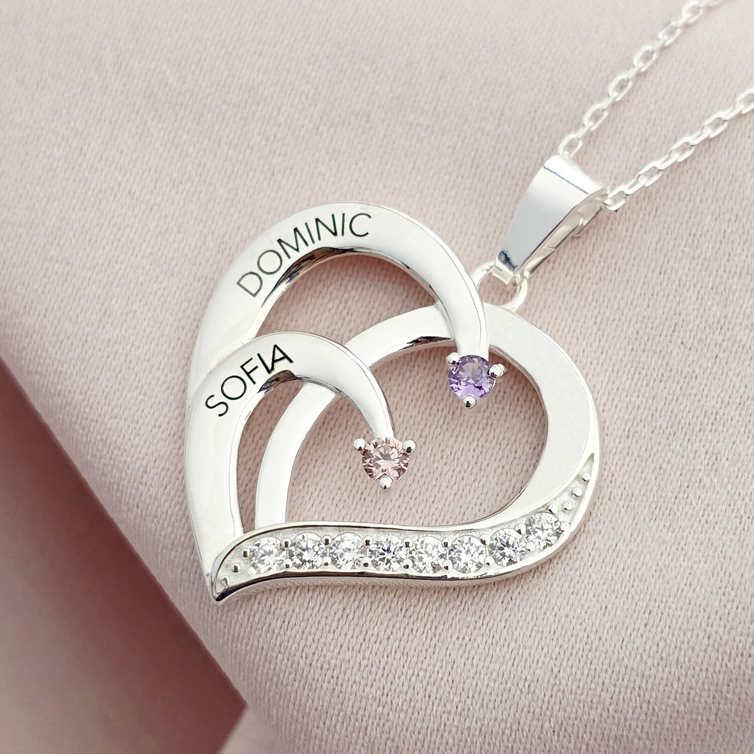 Lantisor Inima cu Poveste - 2 nume si Cristale Zirconia - Argint 925