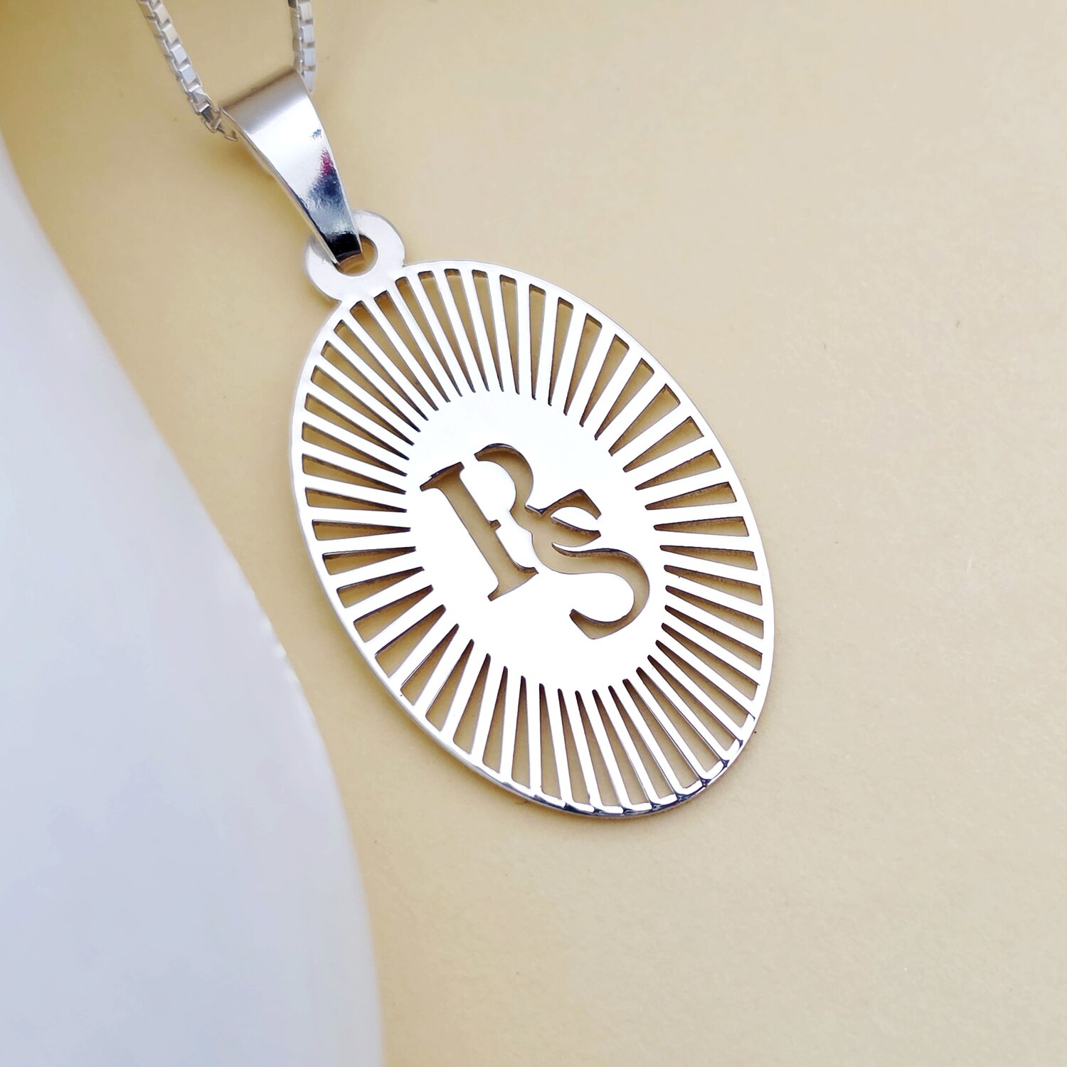 Lantisor cu medalion Oval si decupaje - initiale personalizate - Argint 925