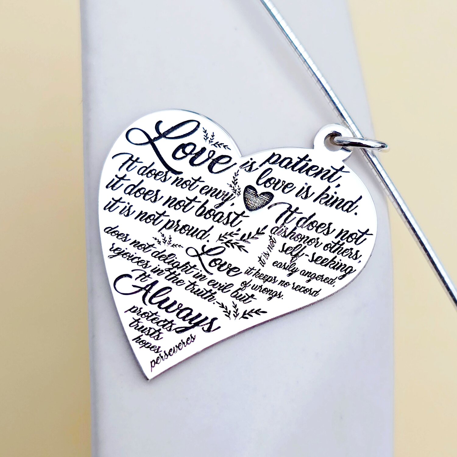 Lantisor fix cu medalion personalizat - Inima gravata - Argint 925