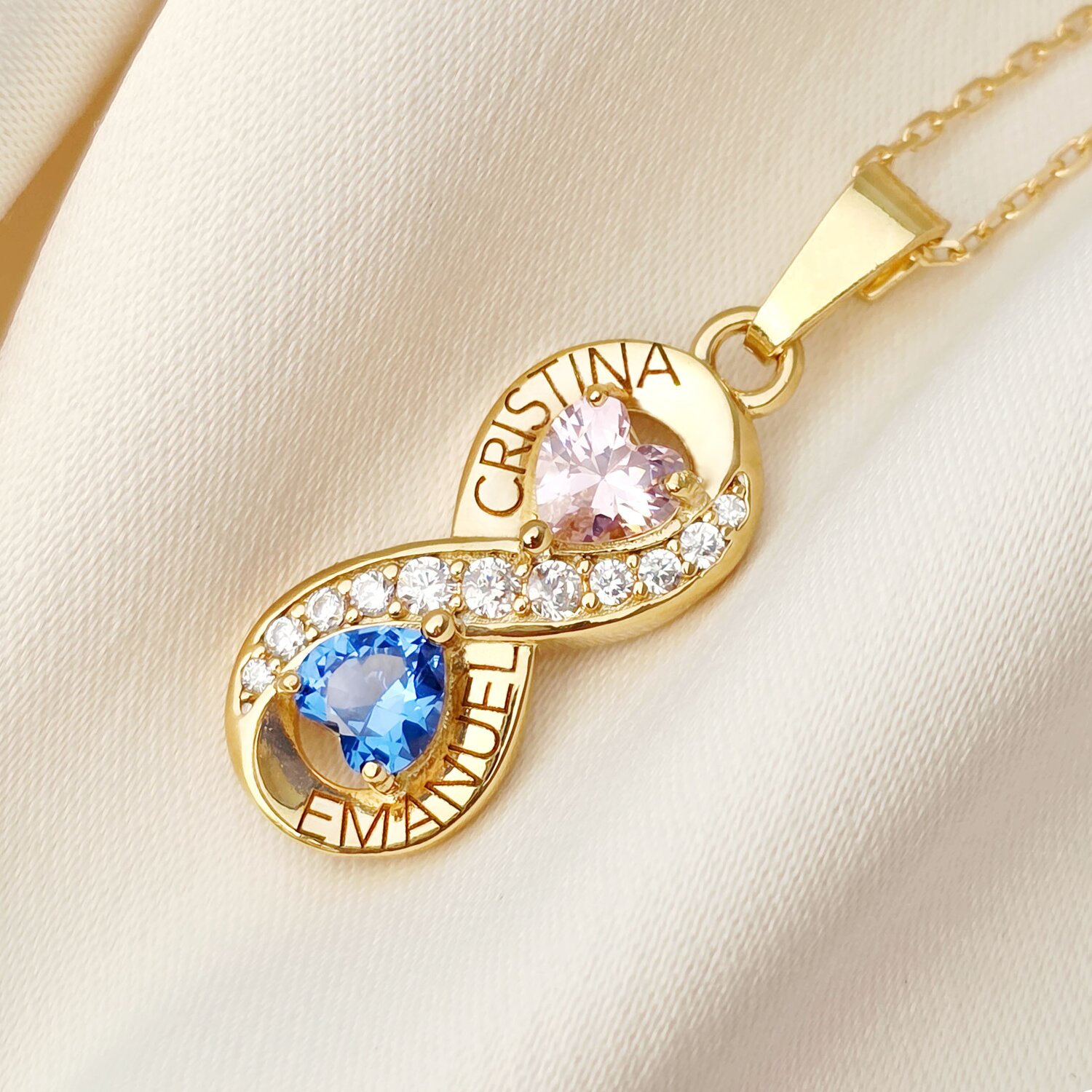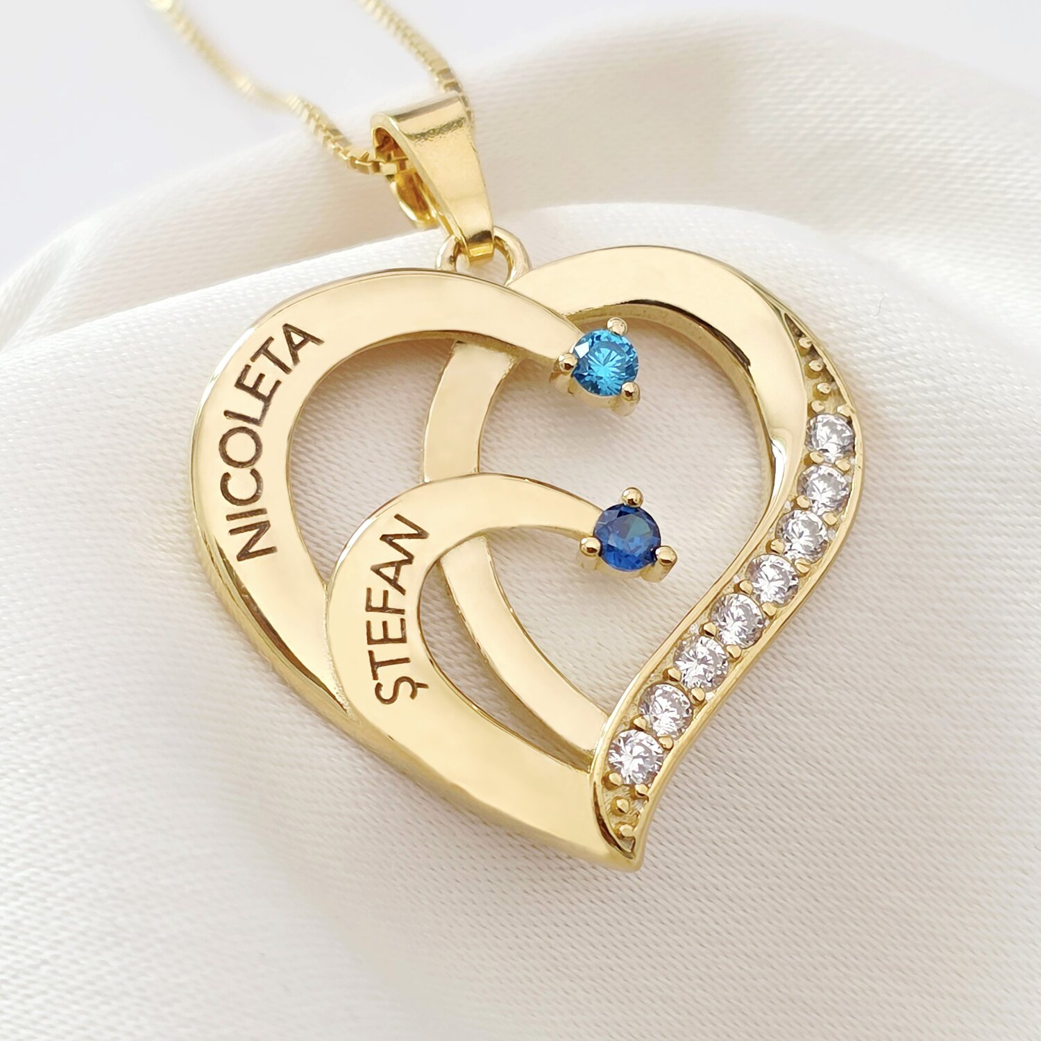 Lantisor Inima cu Poveste - 2 nume si Cristale Zirconia - Argint 925 placat cu Aur 18K