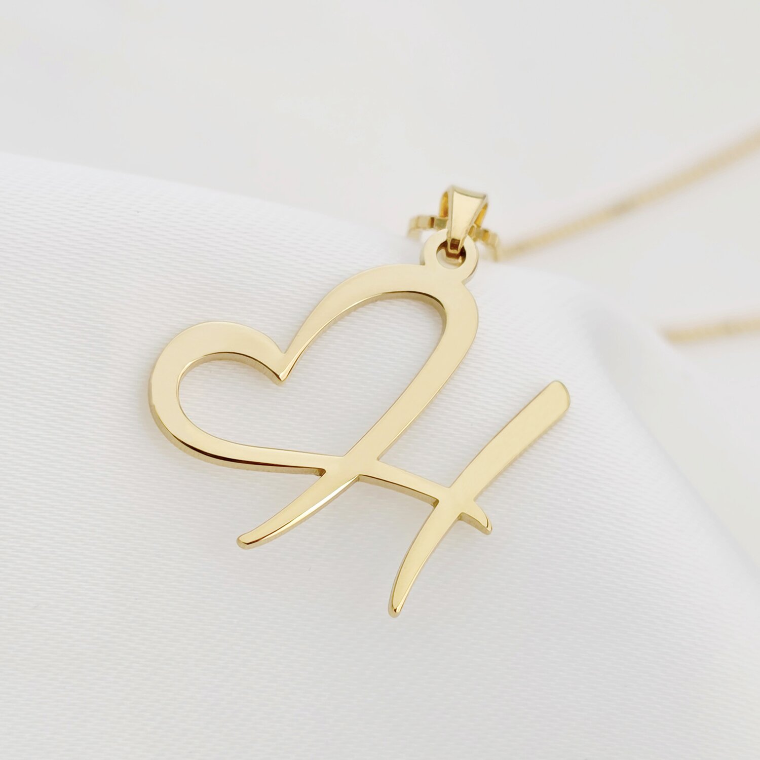 Lănțișor Nume cu Inimă - Font Romantic - Argint 925 cu Aur Galben 18K
