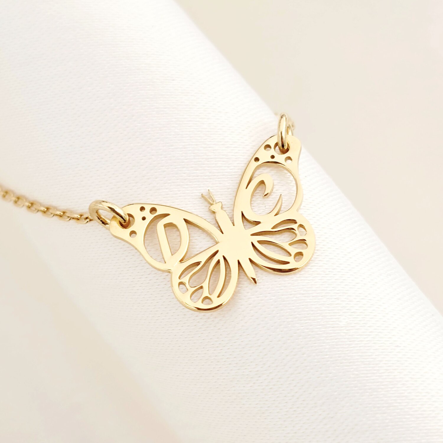 Lantisor personalizat - Pandantiv fluturas cu initiale - Argint 925 placat cu Aur Galben 18K