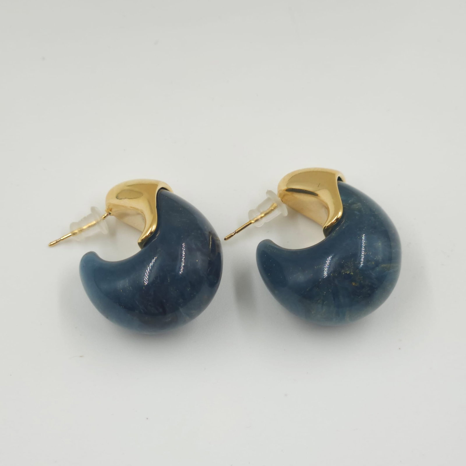 Cercei aurii in forma de picatura cu tija din argint 925 si rasina albastra