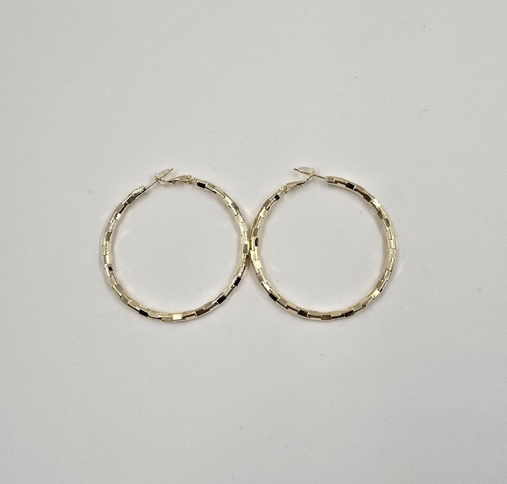 Cercei creole aurii texturate cu efect fatetat si tija din argint 925